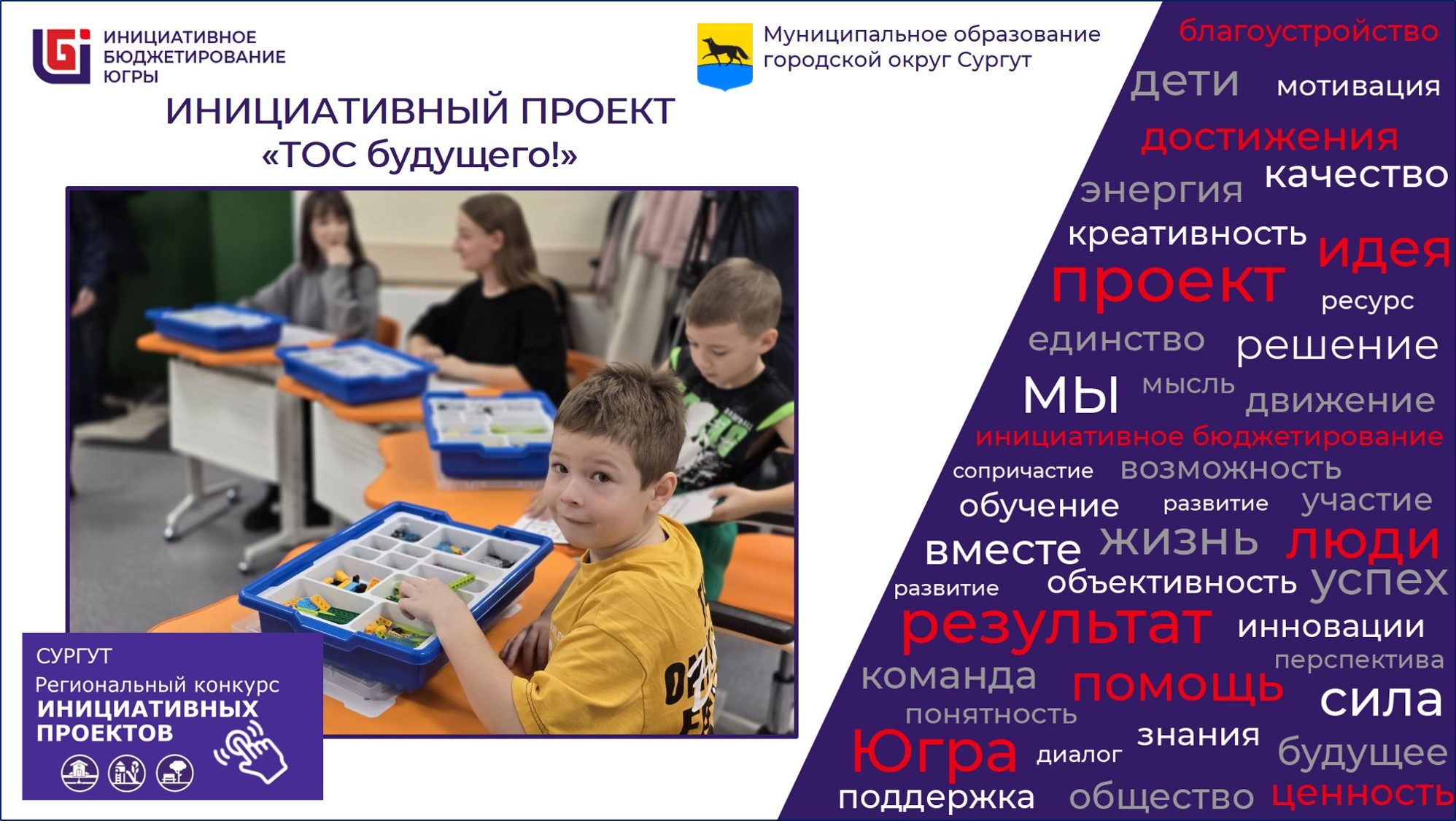 Брошюра «Механизм реализация инициативных проектов в городе Сургуте Схема реализации инициативных проектов Муниципальные правовые акты, регулирующие вопросы, связанные с инициативными проектами Формы документов для заполнения Внесенные в Администрацию города инициативные проекты Общее руководство по использованию брендбука (фирменного стиля) инициативных проектов Объявления Контакты