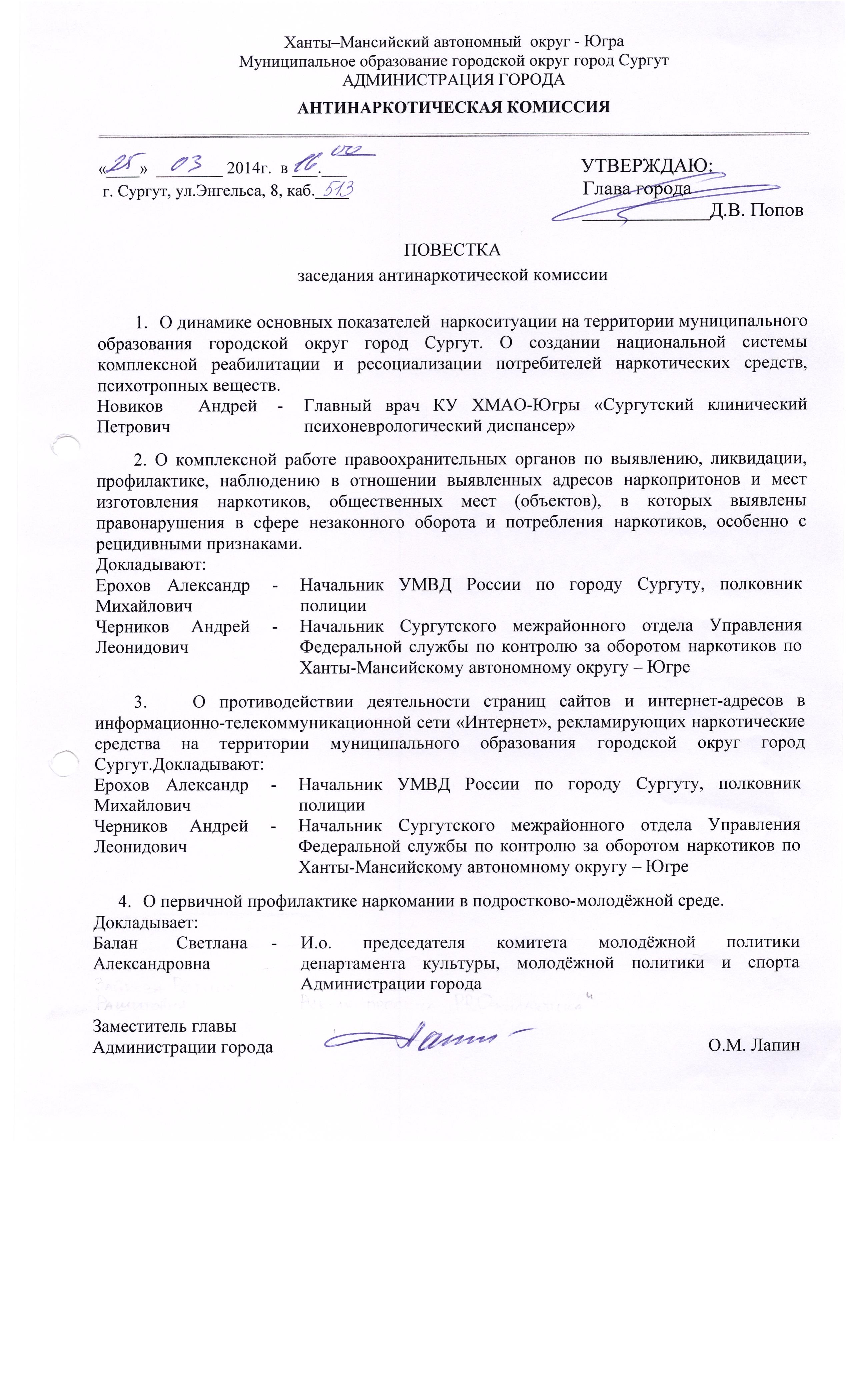 Антинаркотическая комиссия города Сургута