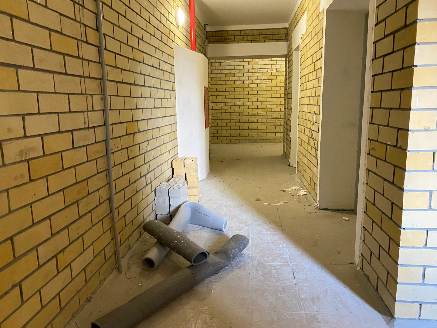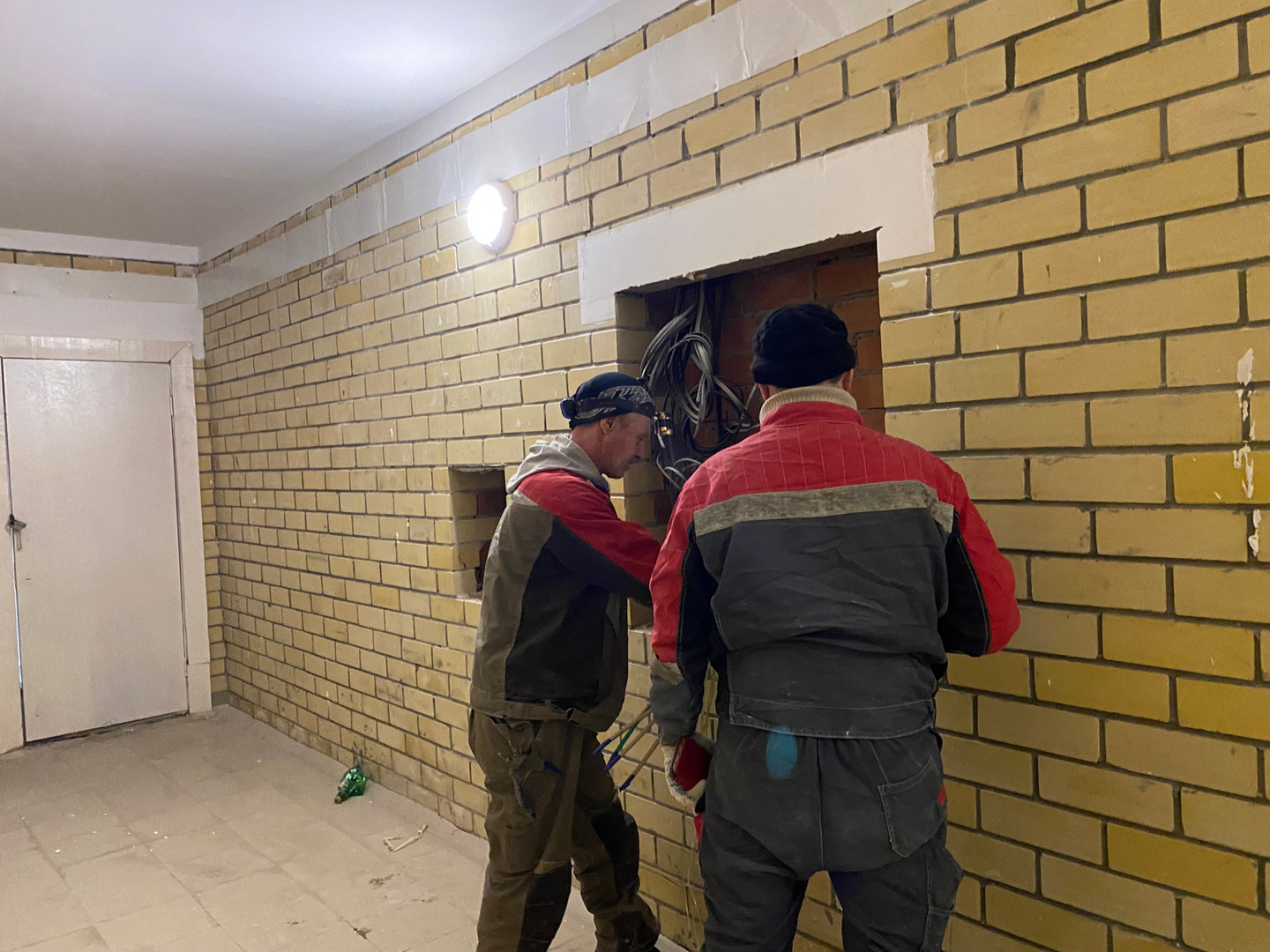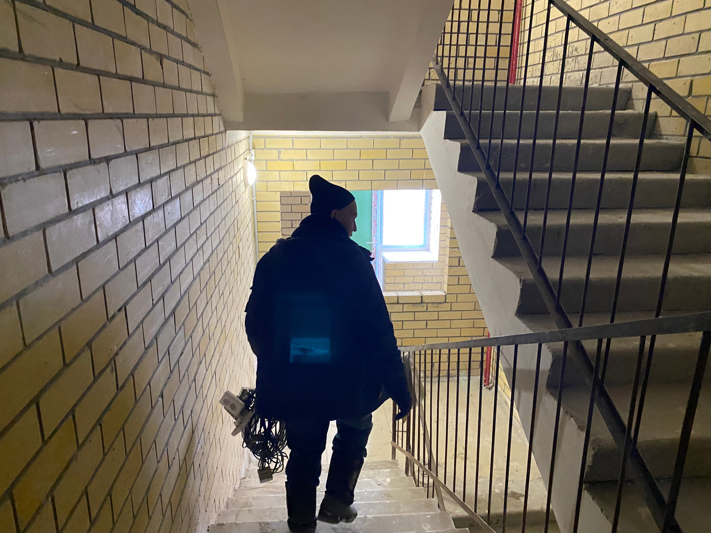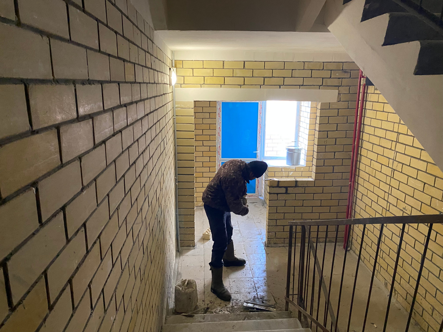 В 8 подъезде проводятся работы по заливке отверстий, штукатурке стен, сборке лифтов, запущено отопление, выполняются электромонтажные работы.