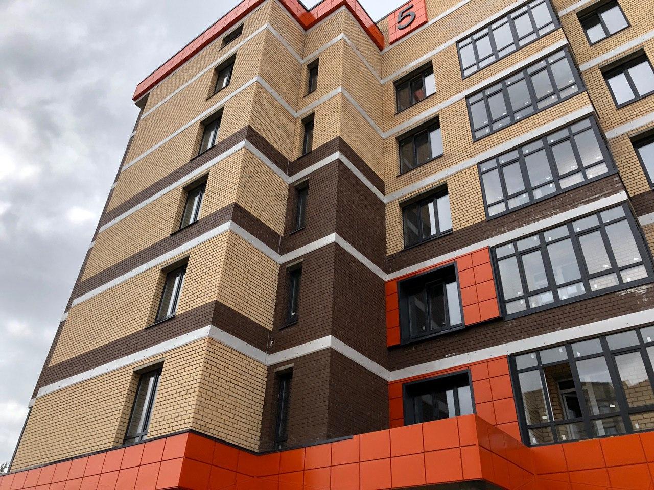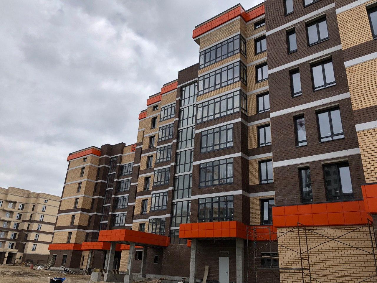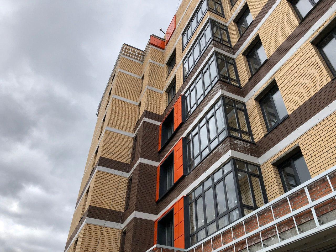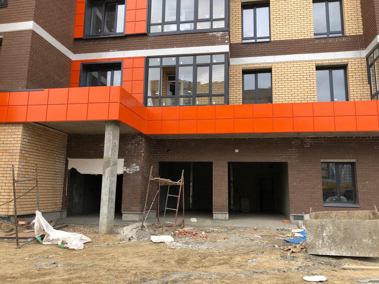 Внутри помещений возведены перегородки, ведется работа по оштукатуриванию стен мест общего пользования, укладка плитки на пол в МОП первой, второй, третьей секции, установка дверей, покраска МОП первой, второй, третьей секции подготовка к благоустройству территории, монтаж внутреннего электроснабжения, монтаж внутреннего отопления. Завершаются работы по остеклению фасада. Ведутся работы по монтажу фасада.
