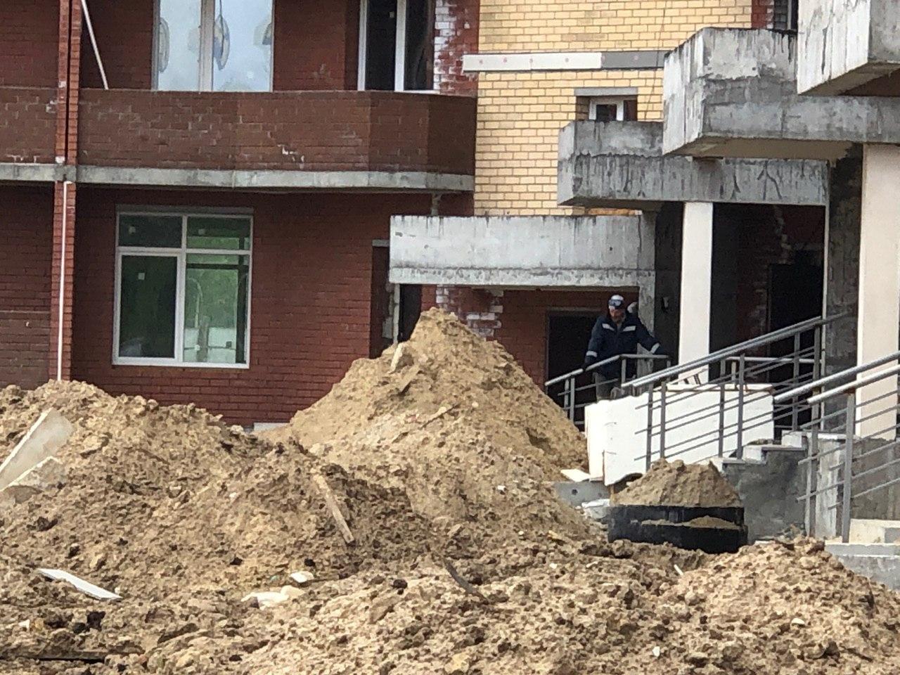 На строительной площадке находятся ориентировочно 20 человек, которые ведут работы по устройству внутренней вентиляции, систем электроснабжения, проводят ревизию электрики, установку кронштейнов для радиаторов, восстановление внутренней ливневой канализации, устройство крылец, в том числе подбетонку для крылец.