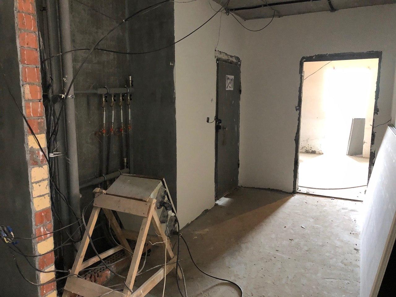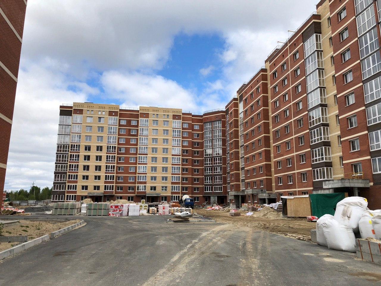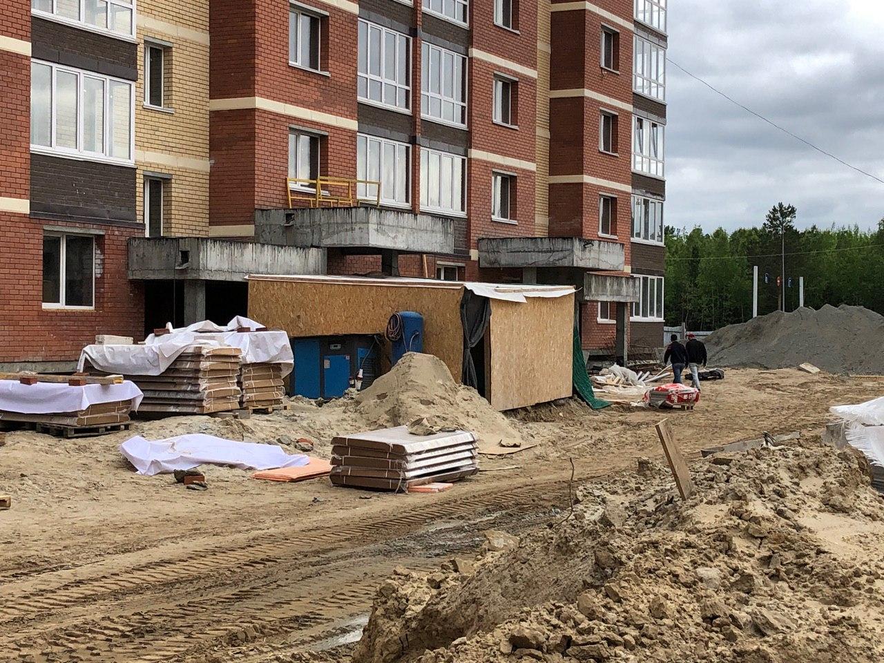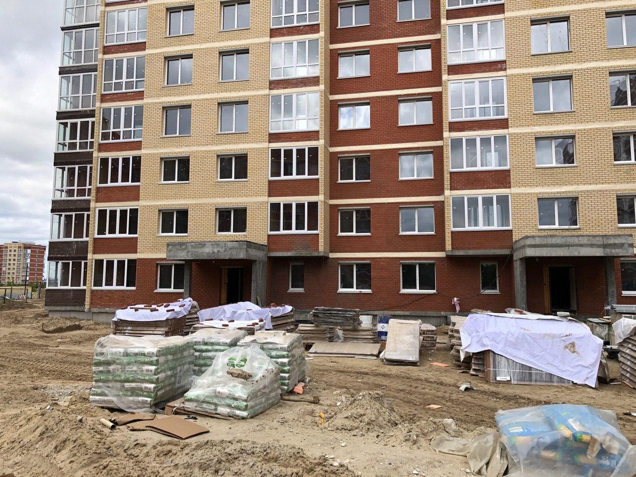 Ведутся внутренние чистовые отделочные работы. На строительной площадке находится порядка 60 человек. На улице продолжают делать раствор для стяжки пола первых этажей.