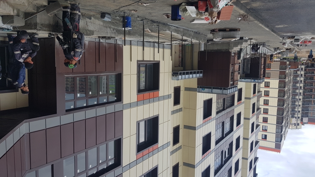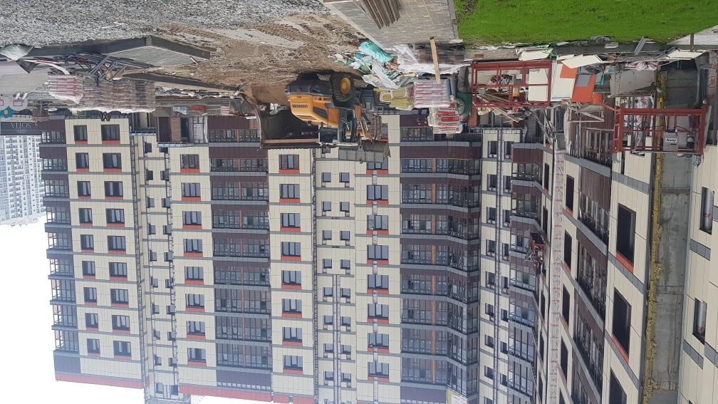 На строительной площадке ведутся строительно-монтажные работы.