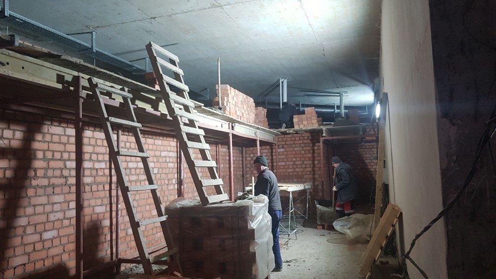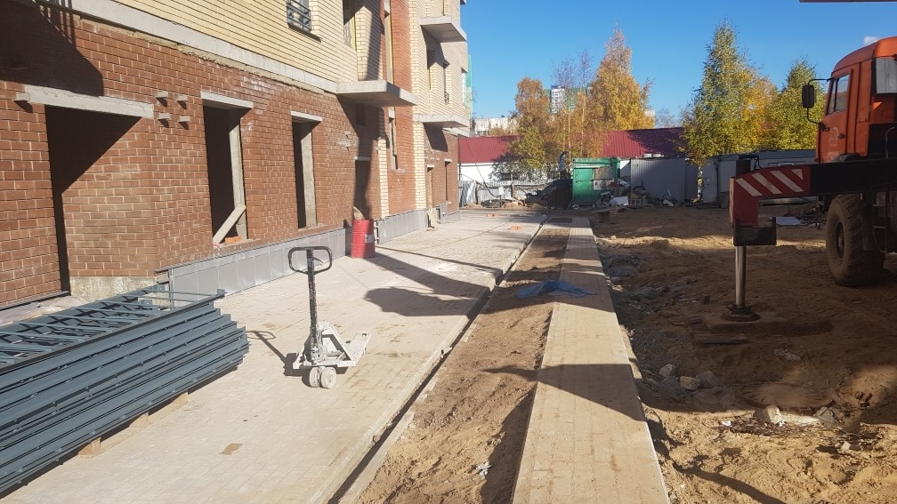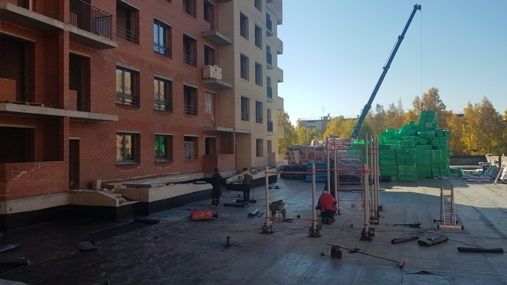 Ведется устройство перегородок из пазогребневой плиты. Монтаж внутренней электропроводки. Устройство монолитных входных групп и плиты паркинга. Ведутся работы по устройству полусухой стяжки типовых этажей и чердак. Гидроизоляция паркинга. Штукатурка колонн в паркинге, штукатурка стен МОП. Монтаж воздуховодов вентиляции. Монтаж оконных конструкций. Монтаж защитных решеток на окна. Ведутся кровельные и фасадные работы. Монтаж стояков канализации и ХГВС. Проводятся работы по устройству гидроизоляционного кровельного покрытия. Ведутся работы по реконструкции наружных сетей. Монтаж слаботочных сетей. Общестроительные работы. Ведется сборка ИТП. Монтируются МАФ