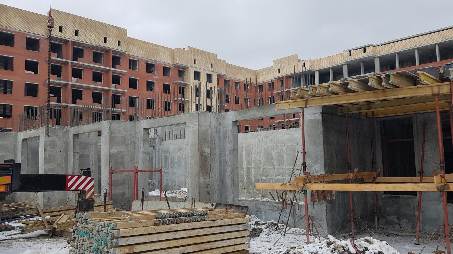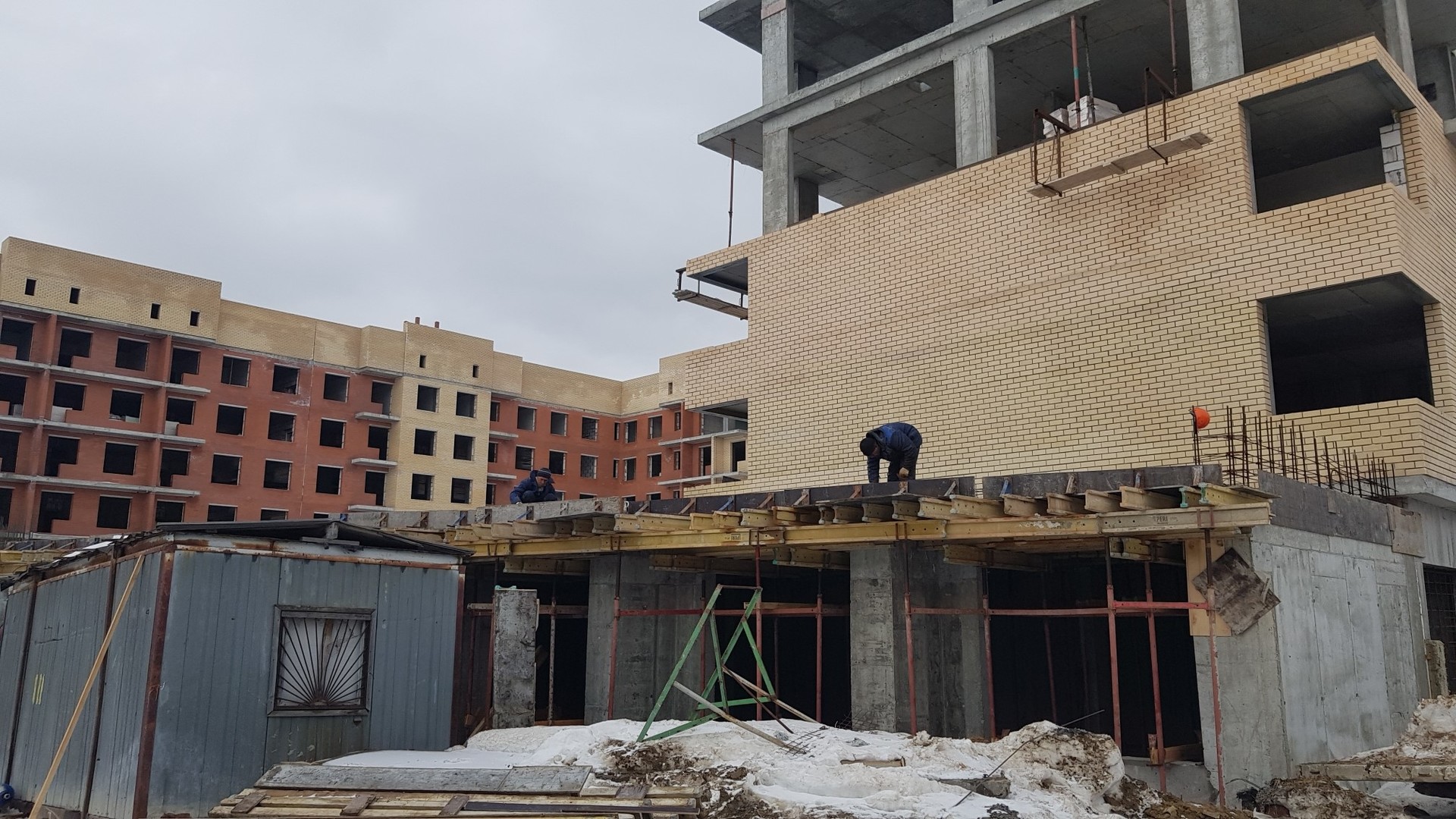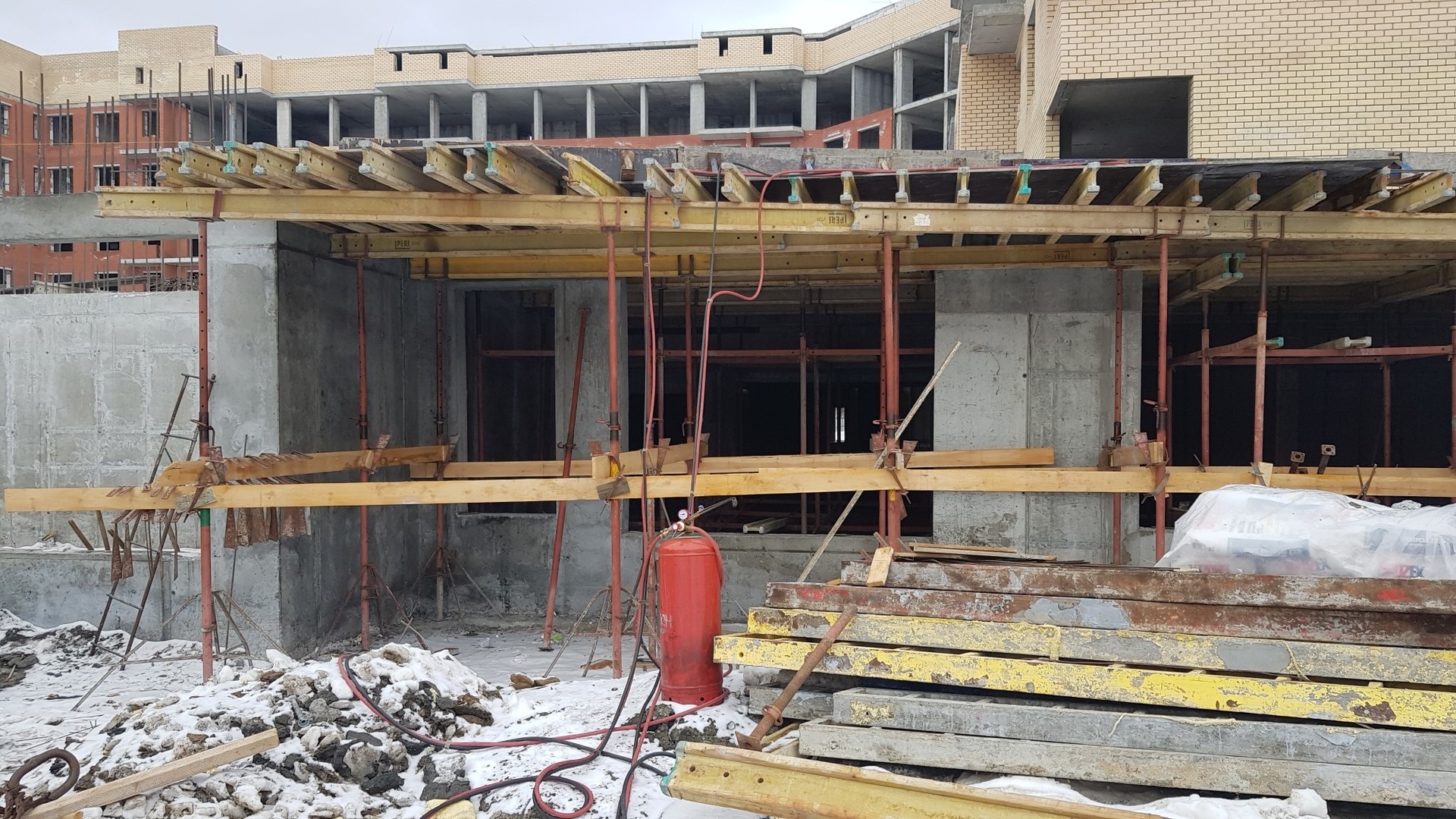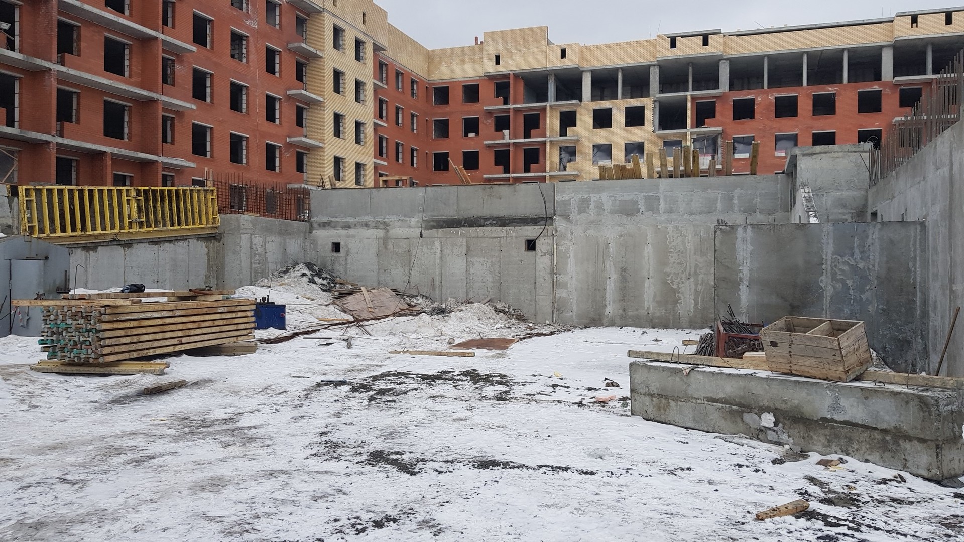 Ведутся работы по устройству монолитной плиты перекрытия паркинга.