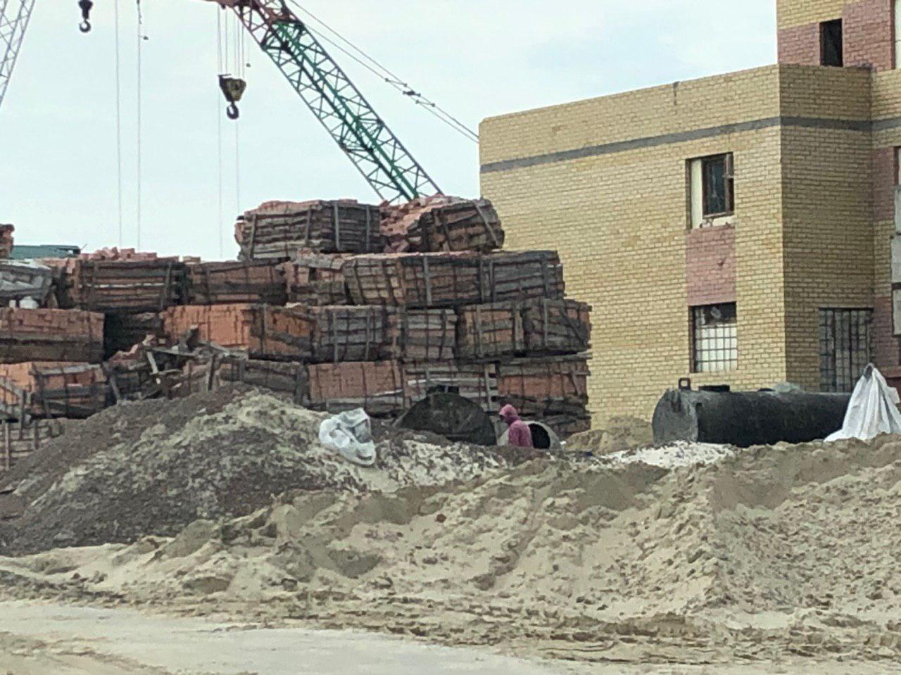 Ведется кладка ограждающих конструкций многоквартирного жилого дома и перегородок. Ведутся работы на кровле силами 8 человек.