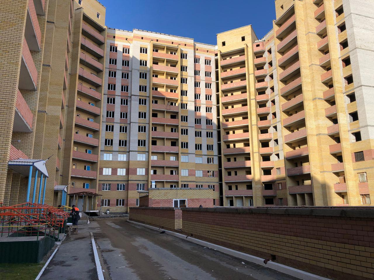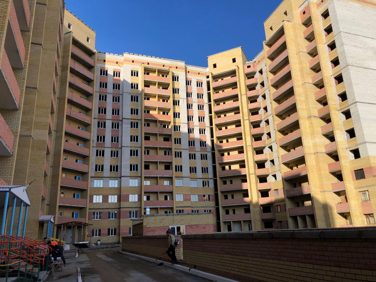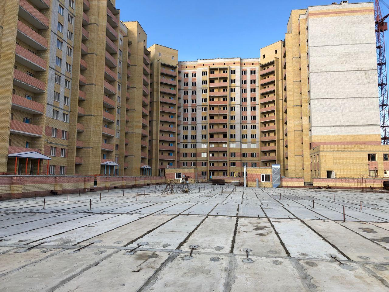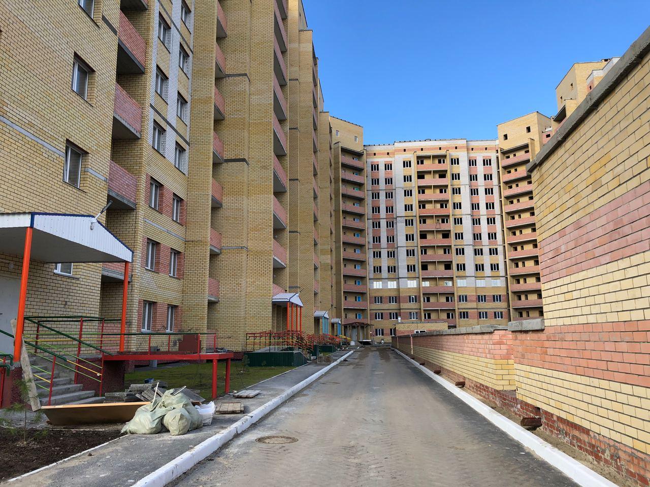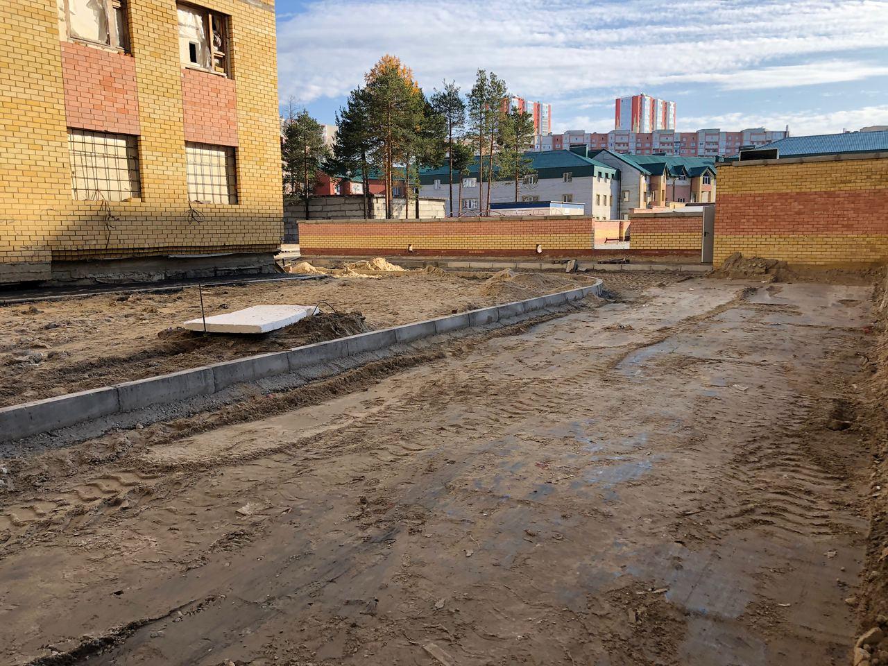 На строительной площадке первых четырех подъездов находятся ориентировочно 7-10 рабочих, ведутся работы по благоустройству территории (установка бордюров, подготовка под асфальтирование проезда).