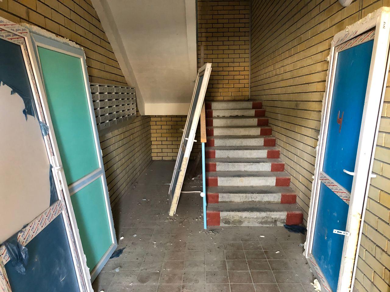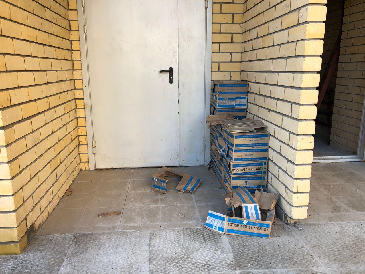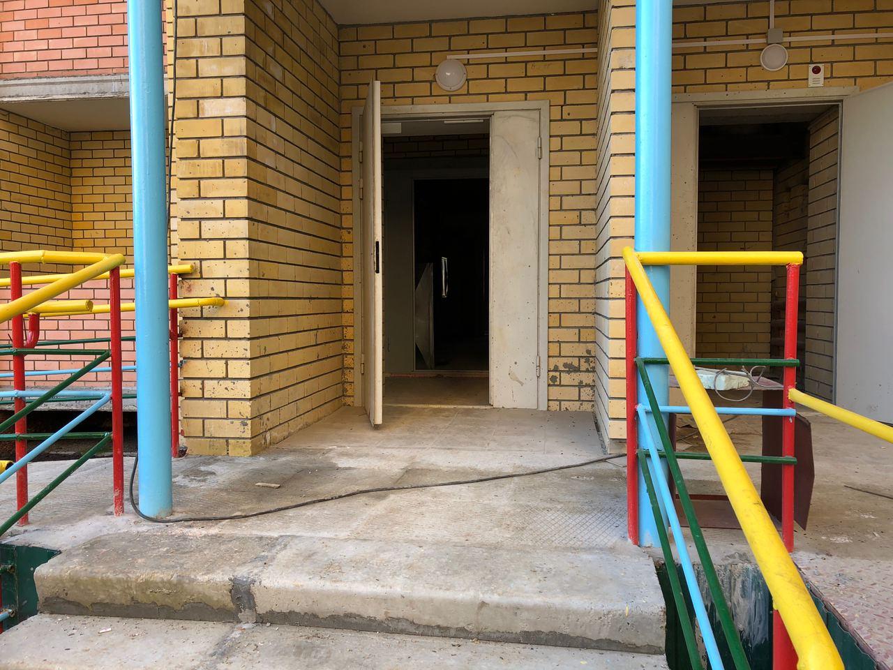 В первом подъезде работы не ведутся, дверь открыта. Входные двери в квартиры закрыты на ключ, осмотр не представляется возможным. Производятся работы по отделке крыльца.
