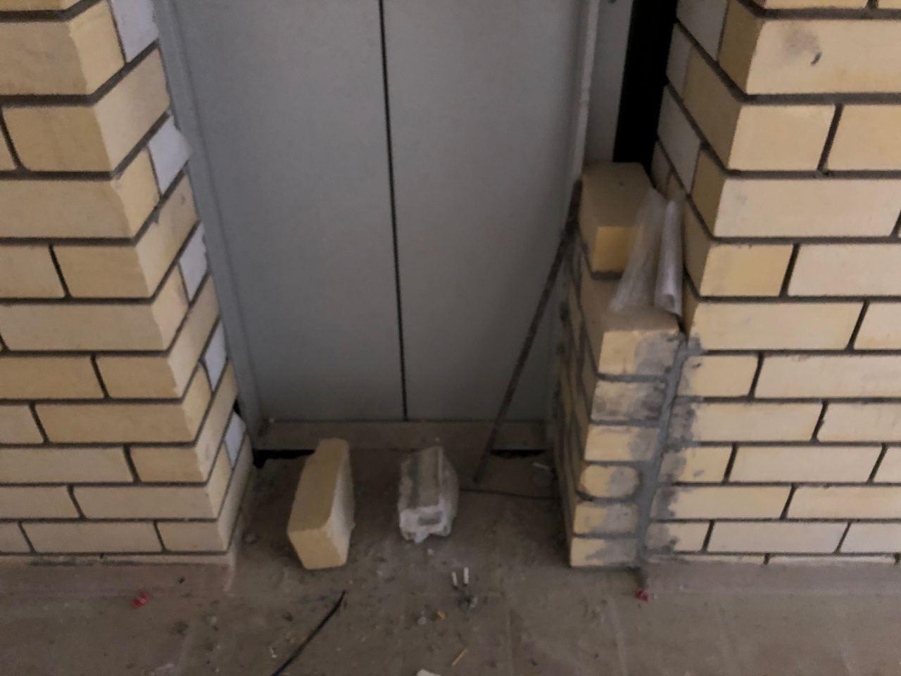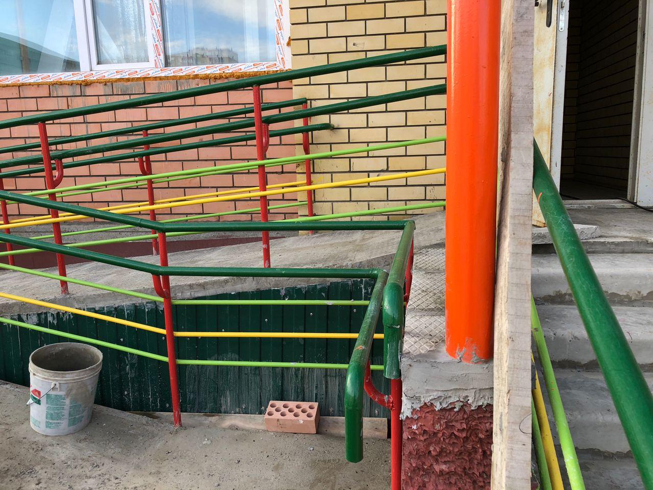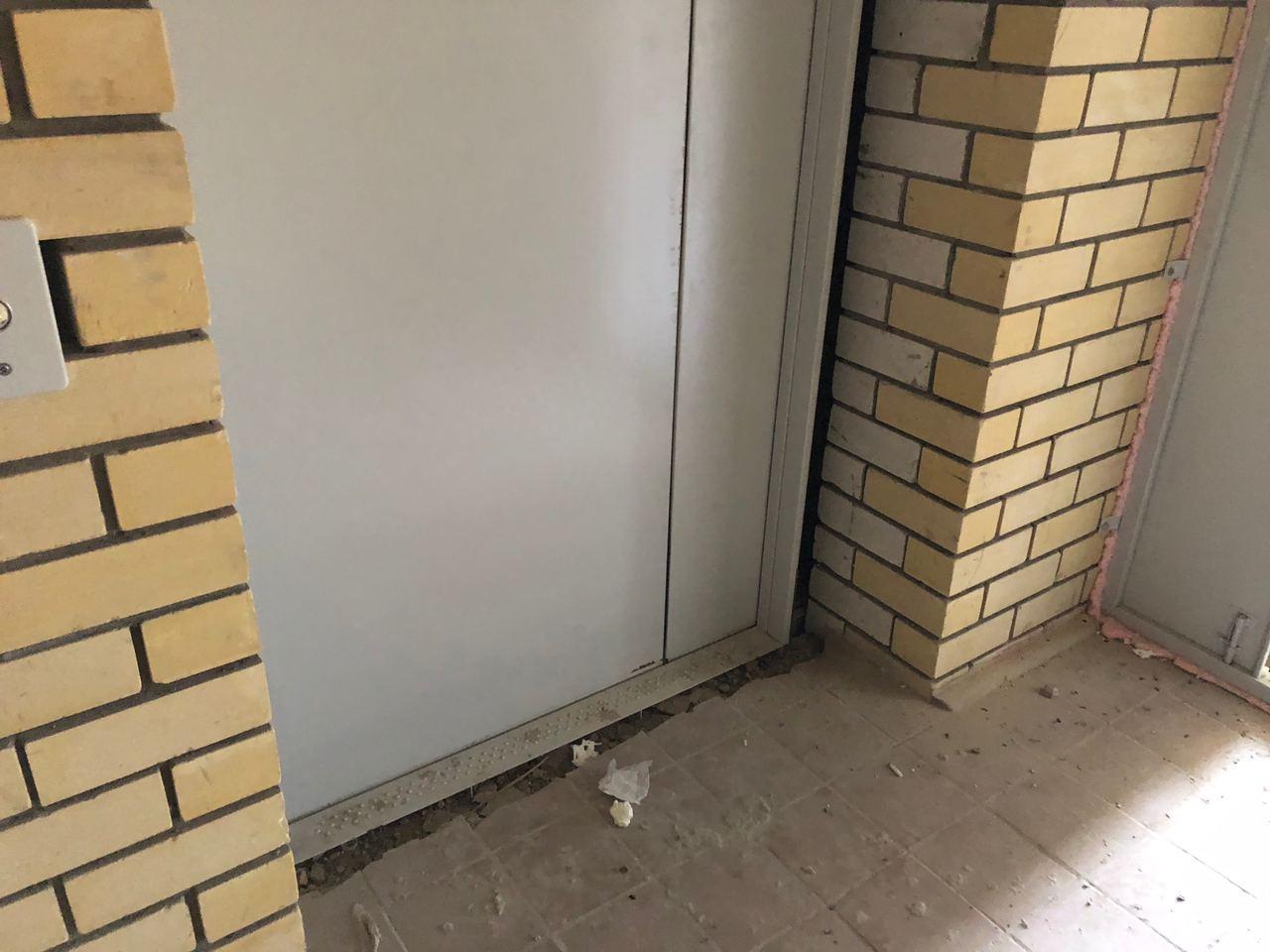 В первом подъезде работы не ведутся, дверь открыта. Входные двери в квартиры закрыты на ключ, осмотр не представляется возможным. Производятся работы по отделке крыльца.