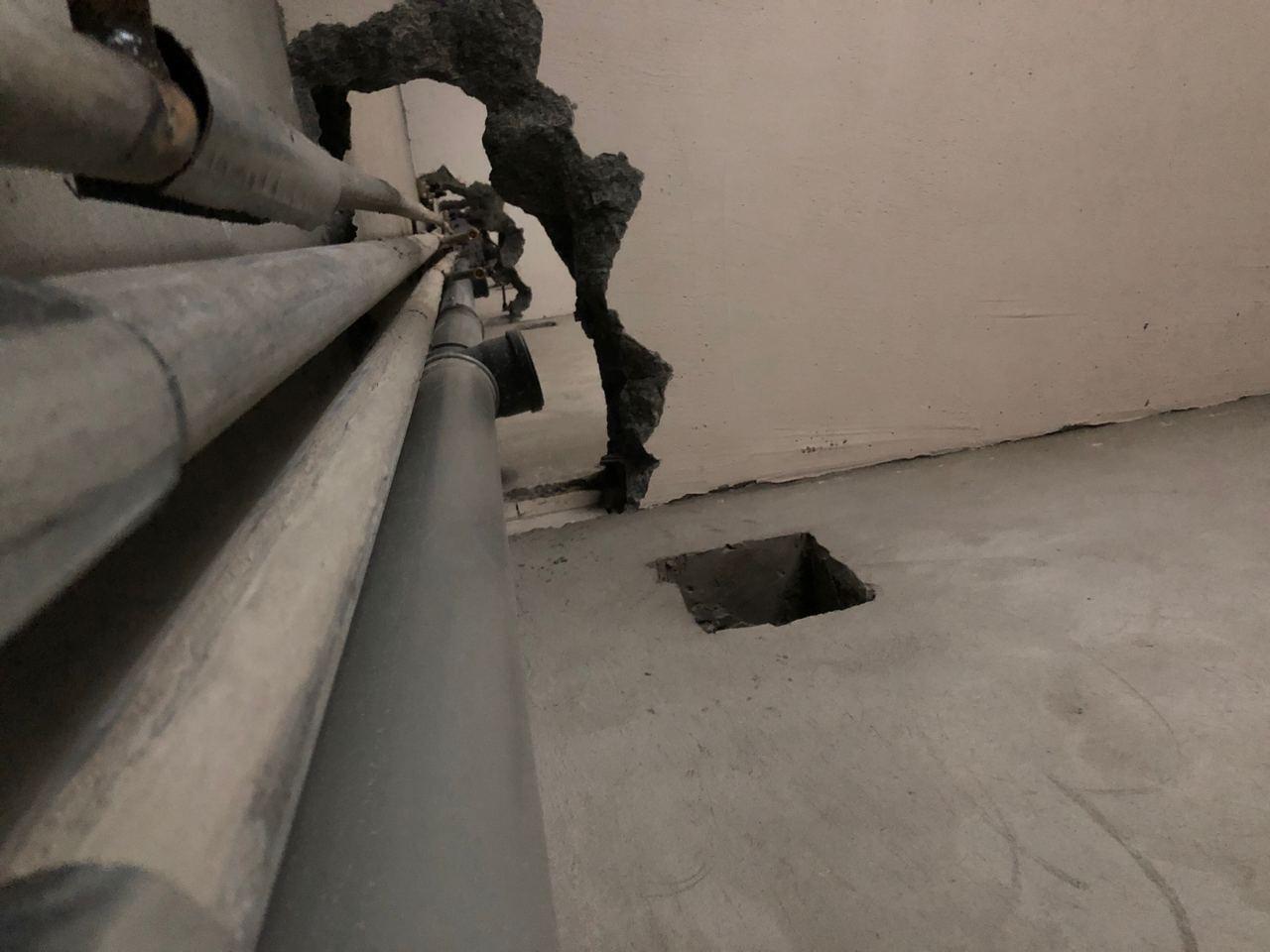 Во втором подъезде работы не ведутся, двери открыты. Работы по подключению разводки отопления произведены на всех этажах к радиаторам, на входе в квартиры подключение не выполнено. Ведется отделка мусорокамеры плиткой. С 7 этажа до 10 не выполнена заделка отверстий в межэтажном перекрытии.