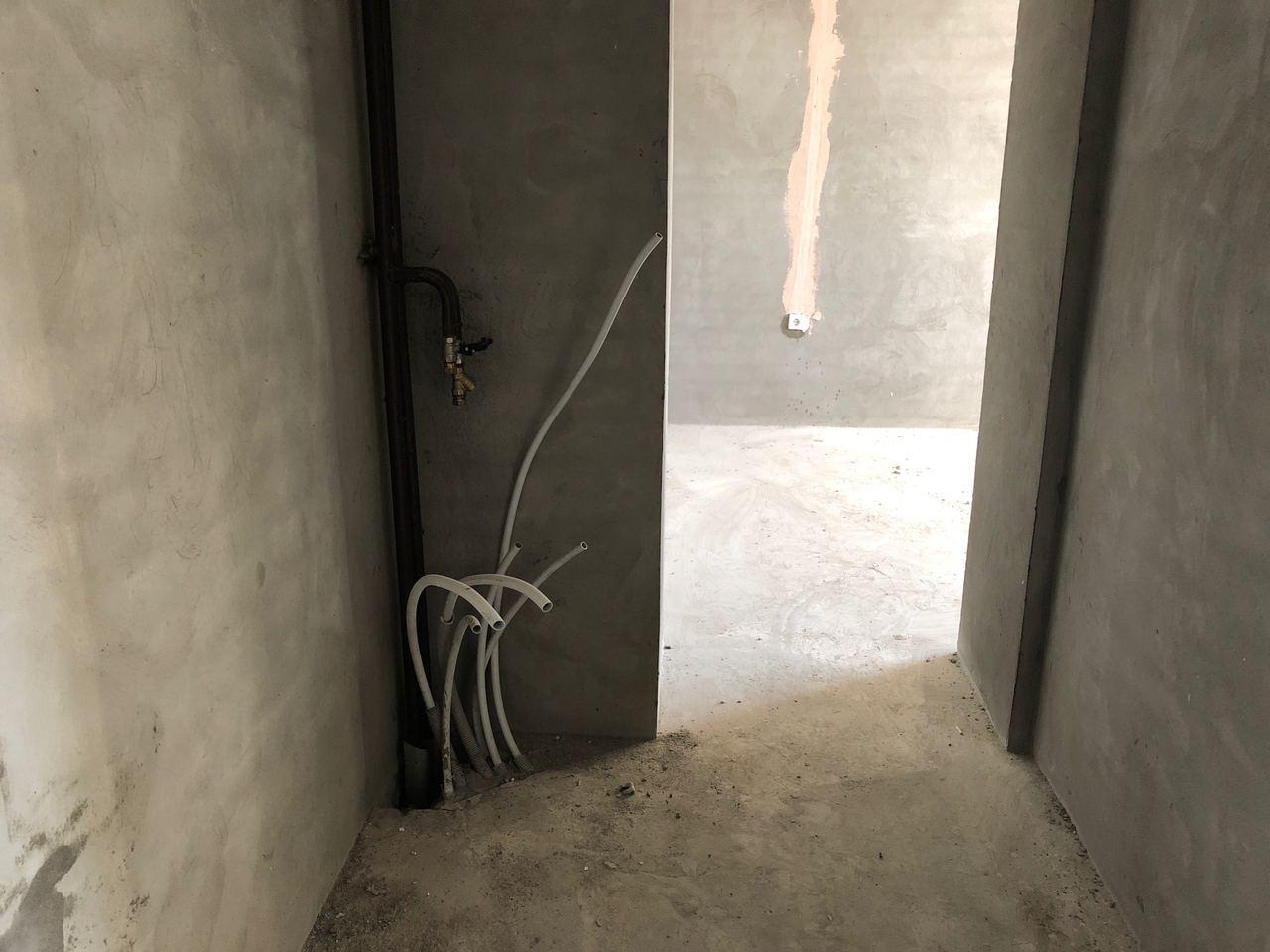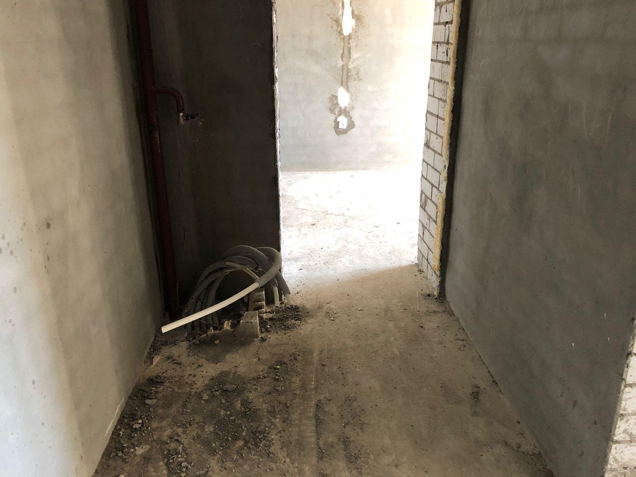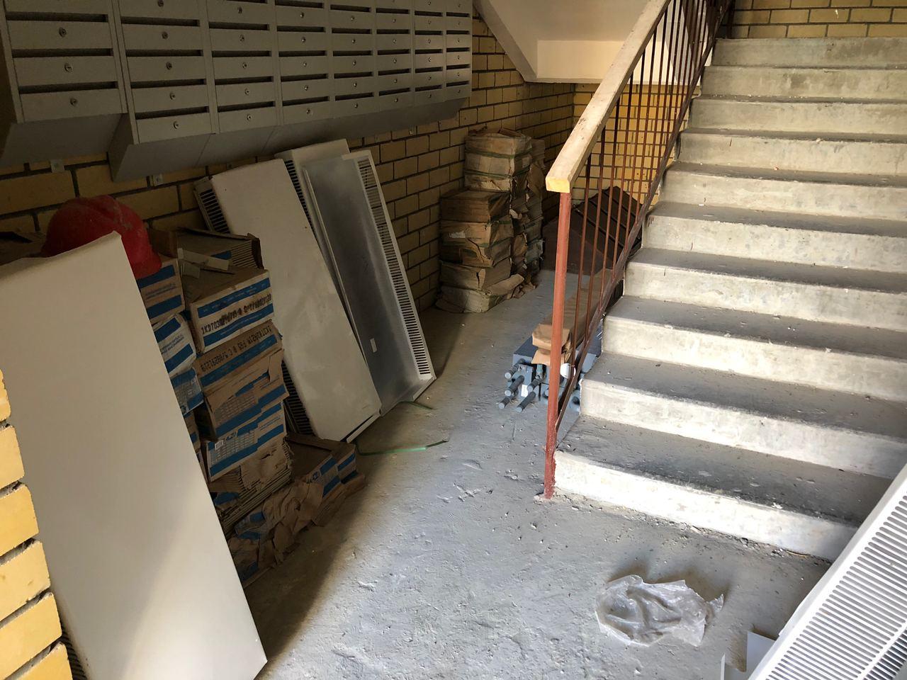 В третьем подъезде разводка отопления не подключена, двери открыты, работы не ведутся.