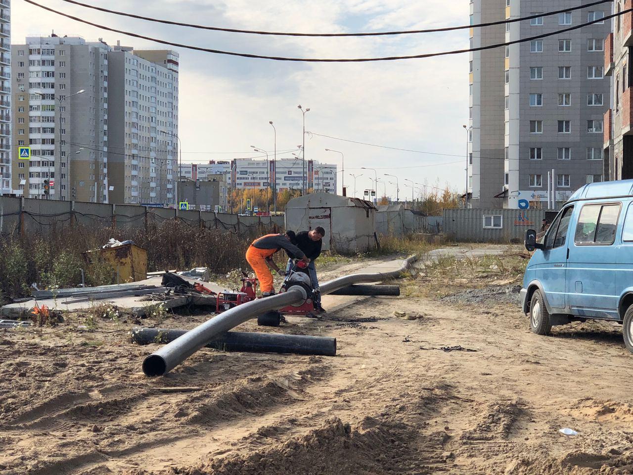 На строительной площадке ООО СК (ЮСК) ведет работы по устройству наружных сетей канализации.
