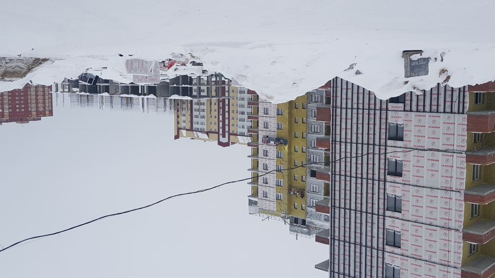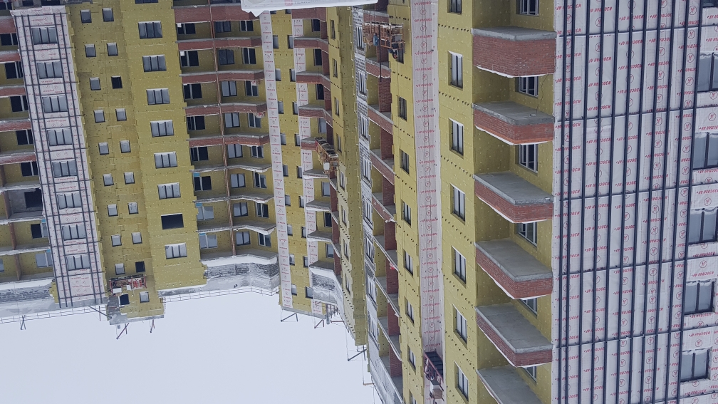 На строительной площадке ведутся строительно-монтажные работы.
