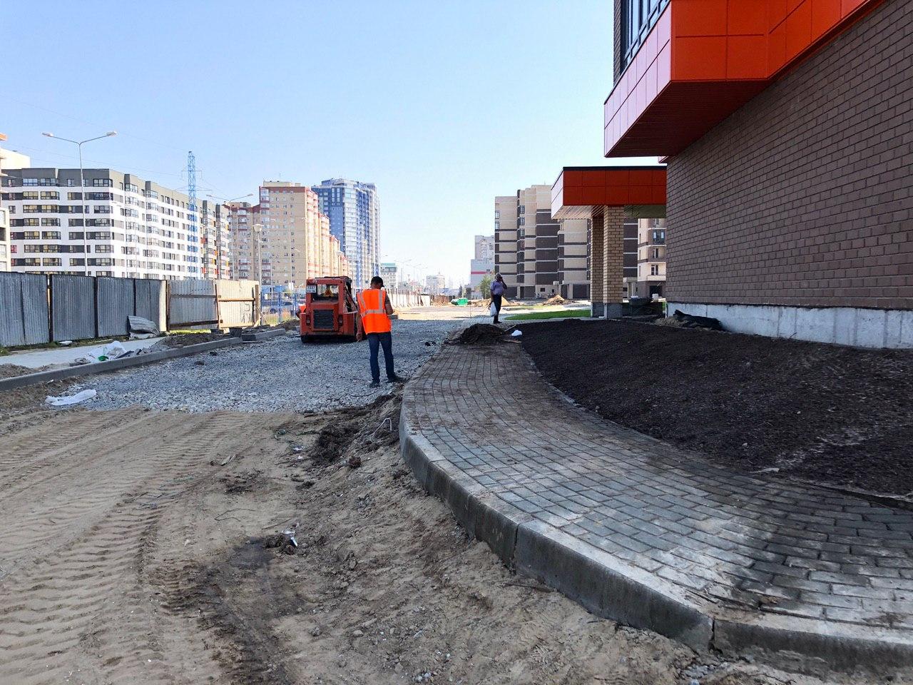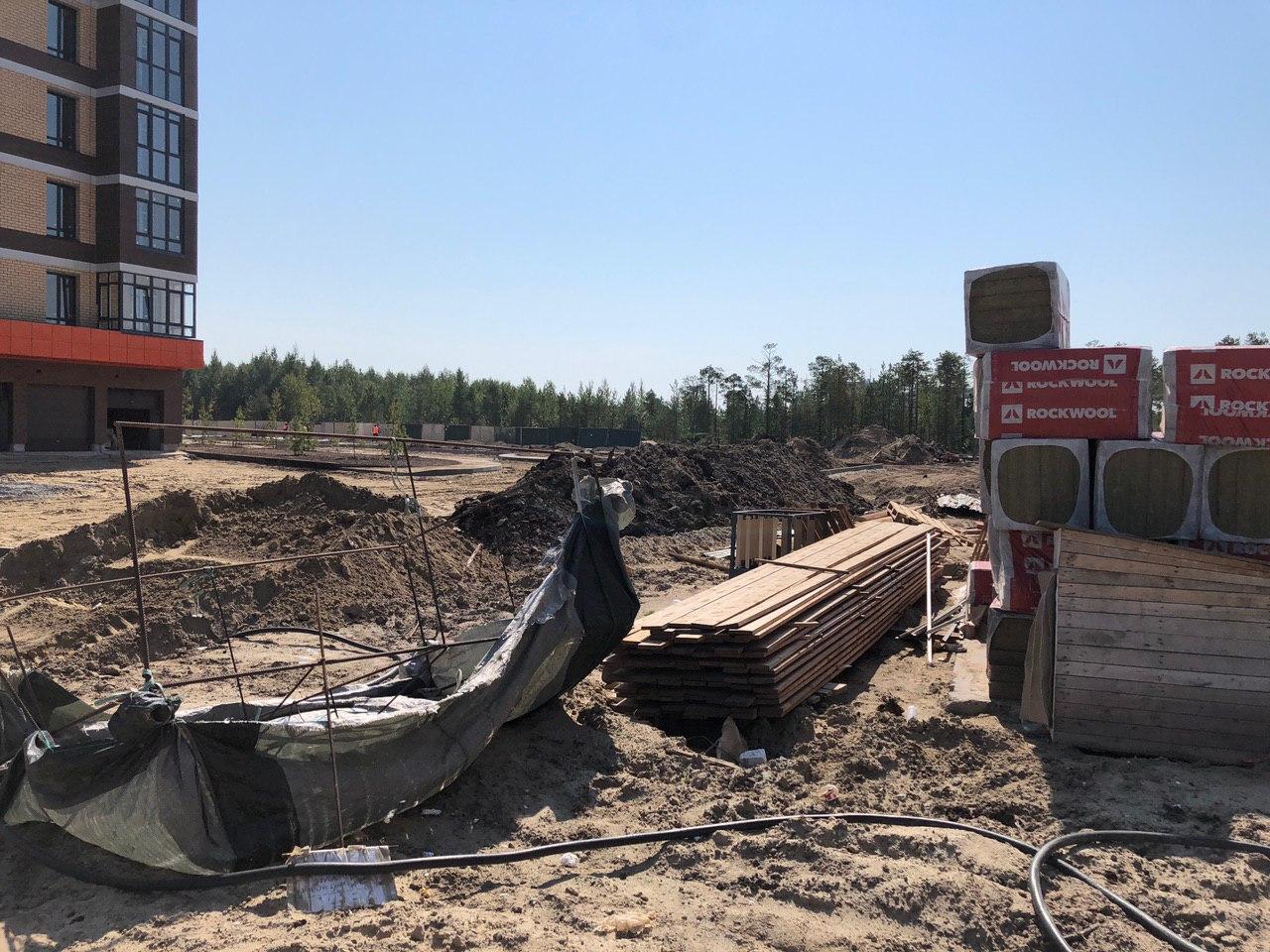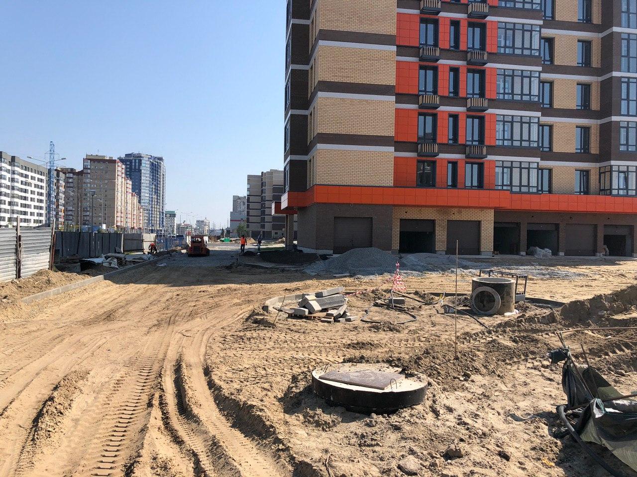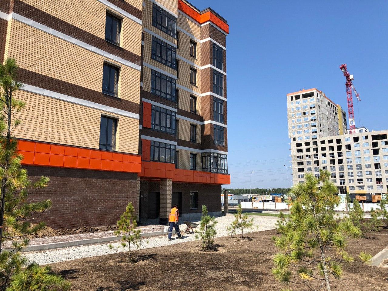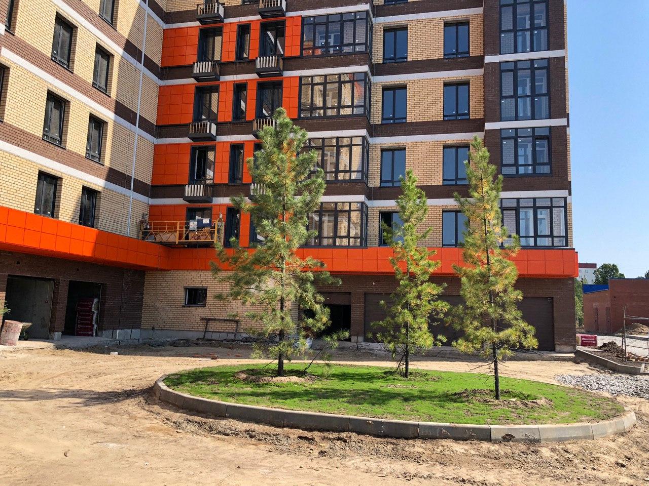 Ведутся работы по отделке мест общего пользования, работы по монтажу фасада, установка коробов под кондиционеры, работы по благоустройству территории.