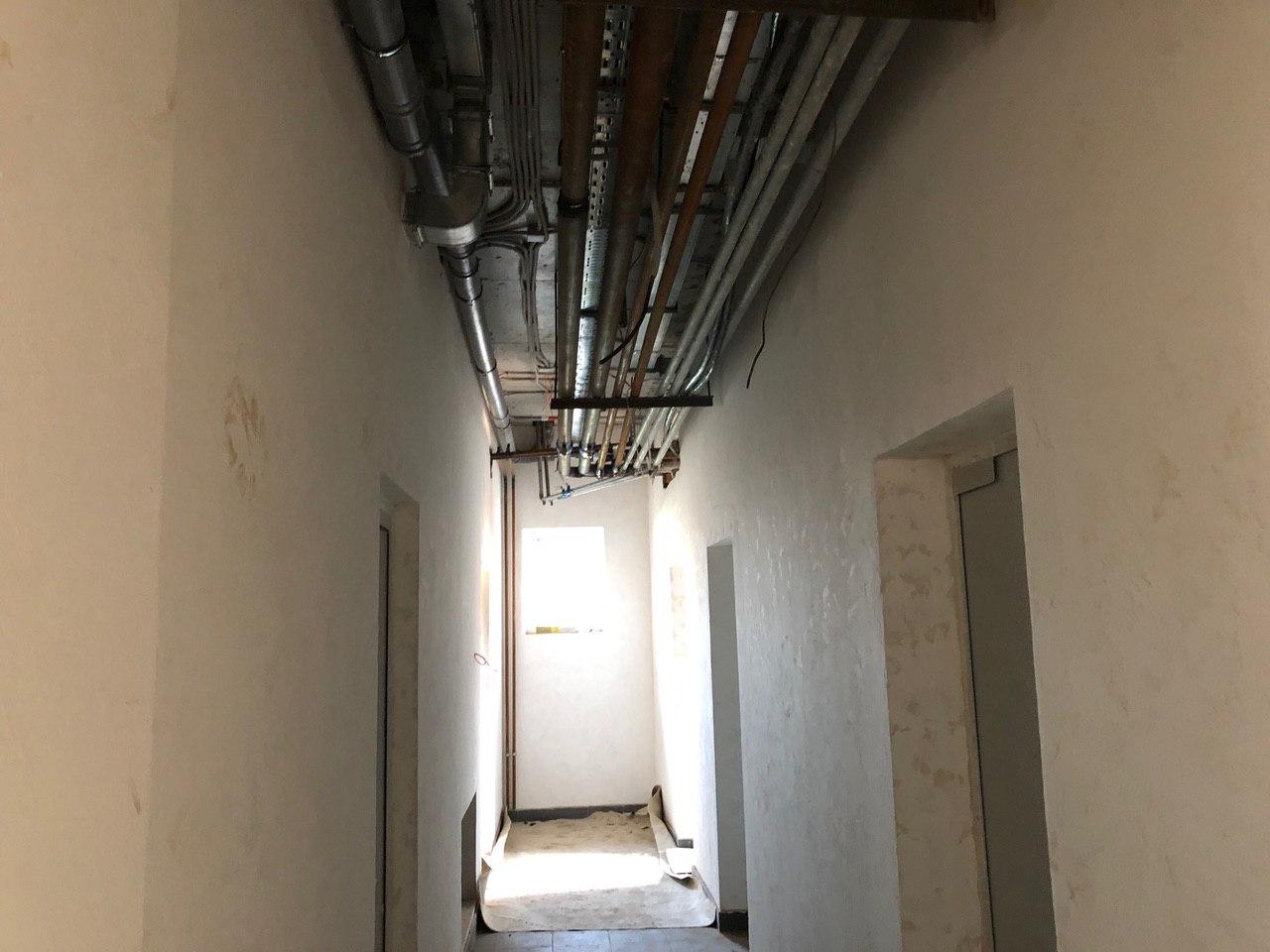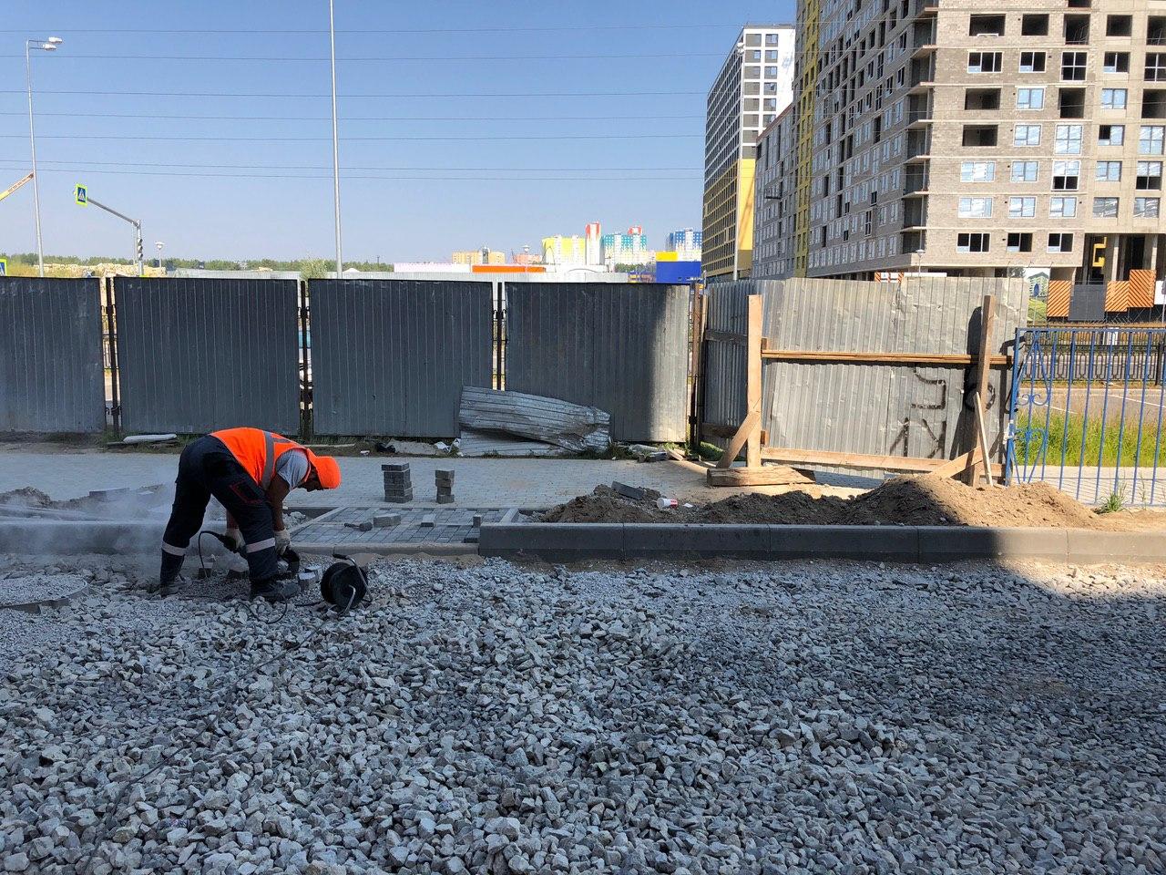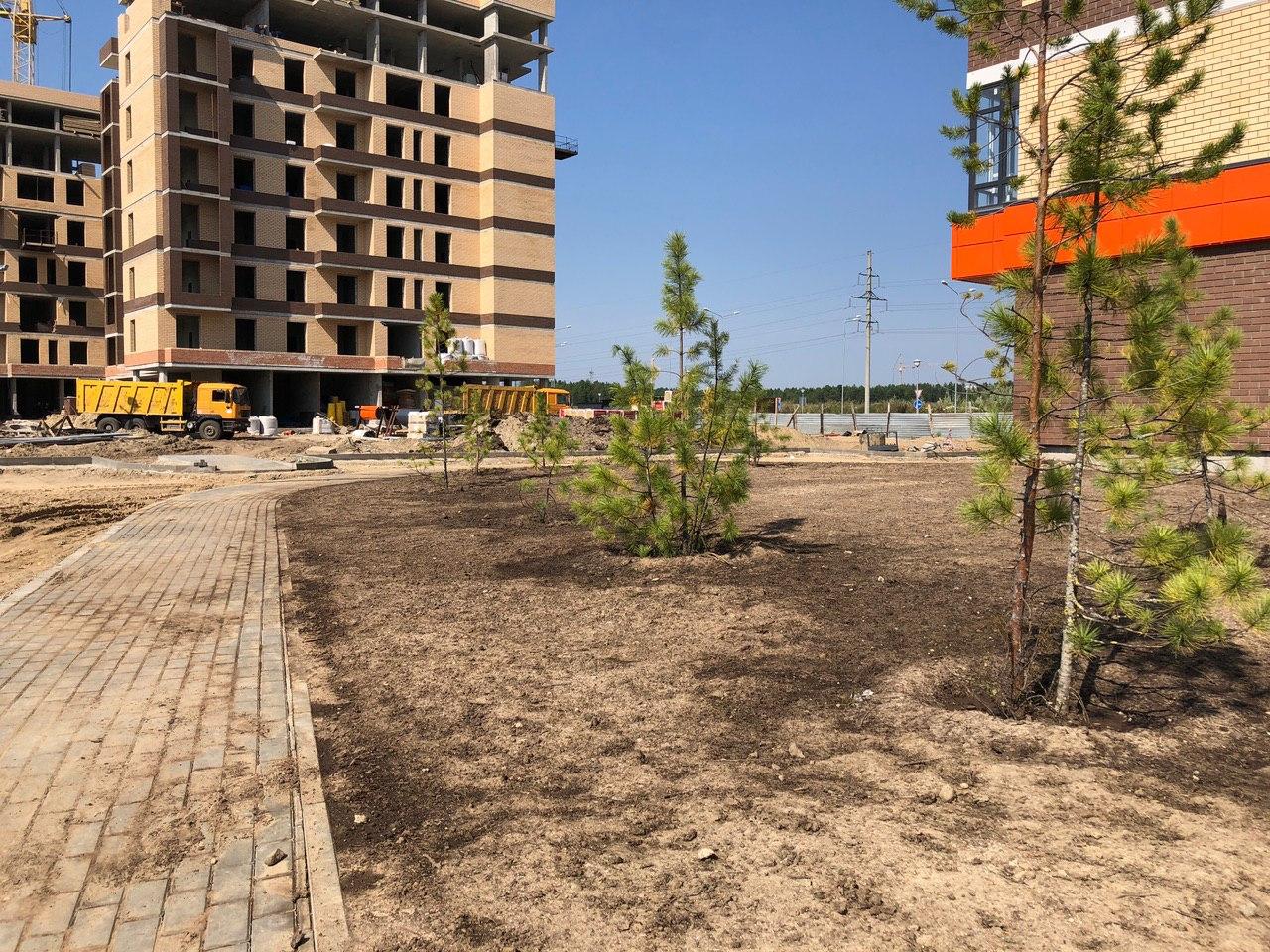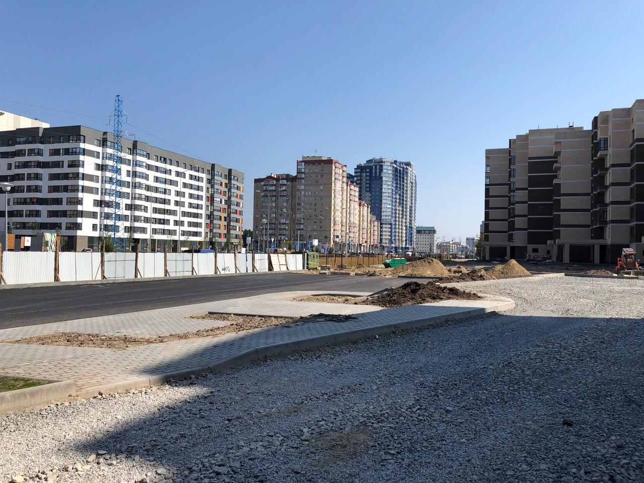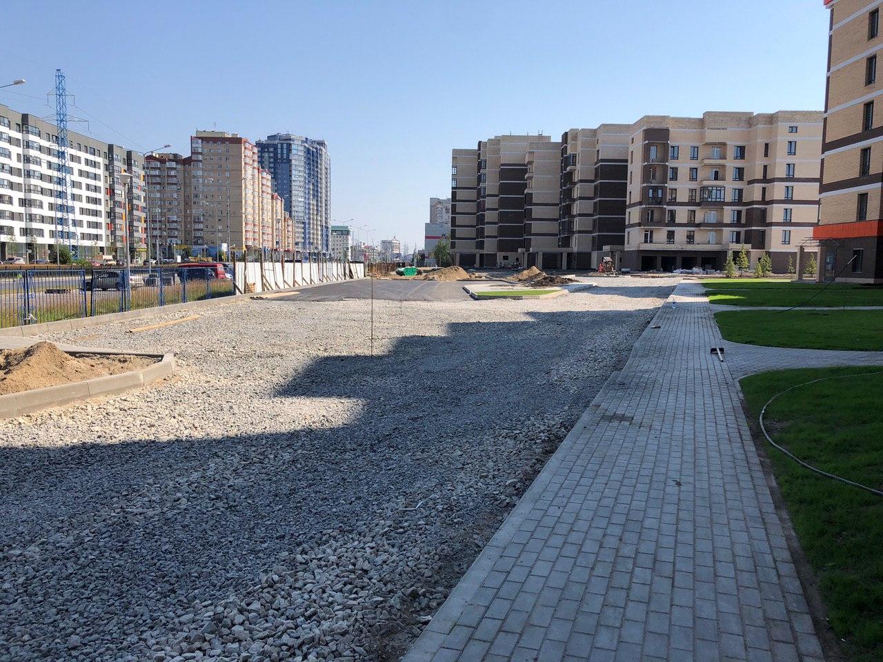 Ведутся работы по отделке мест общего пользования, работы по монтажу фасада, установка коробов под кондиционеры, работы по благоустройству территории.