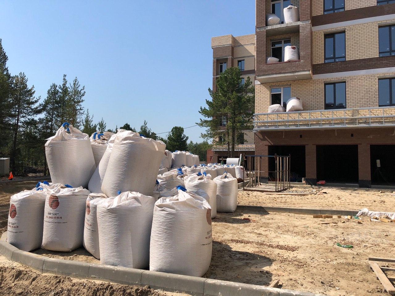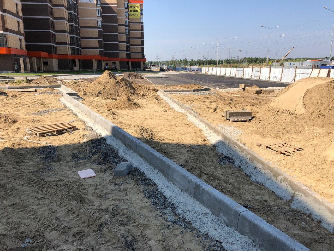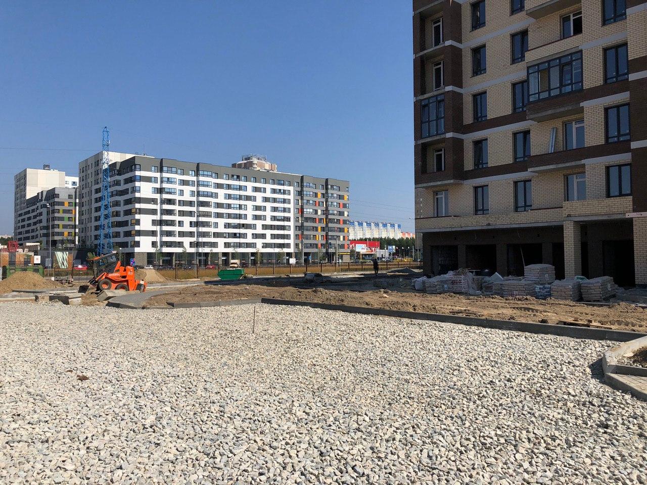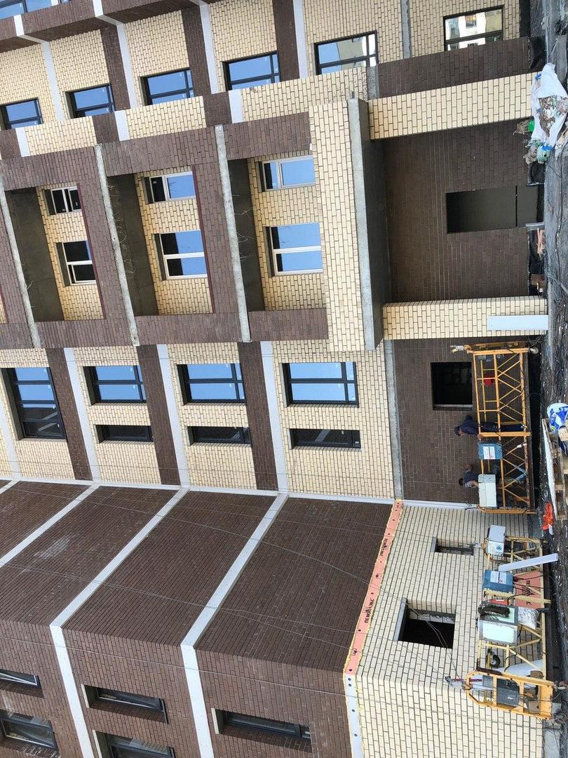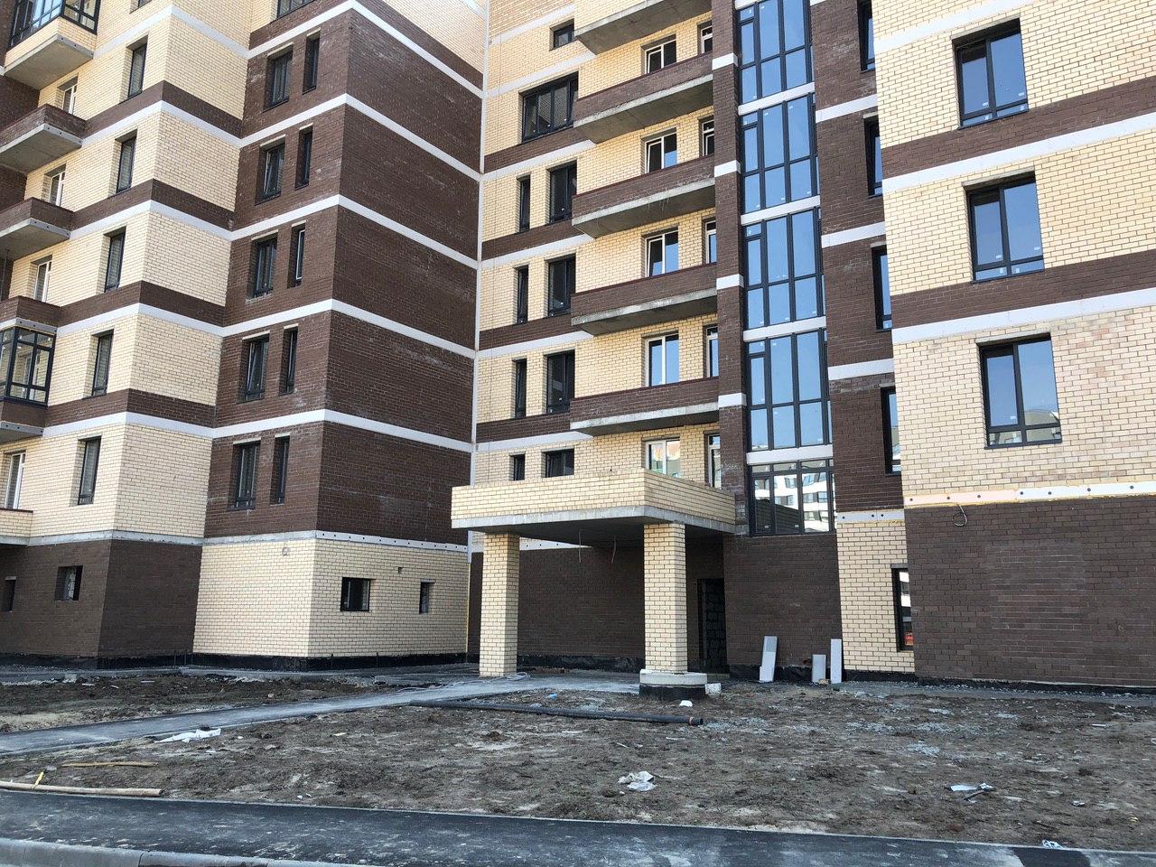 Производятся работы по работы по монтажу фасада, благоустройству территории.