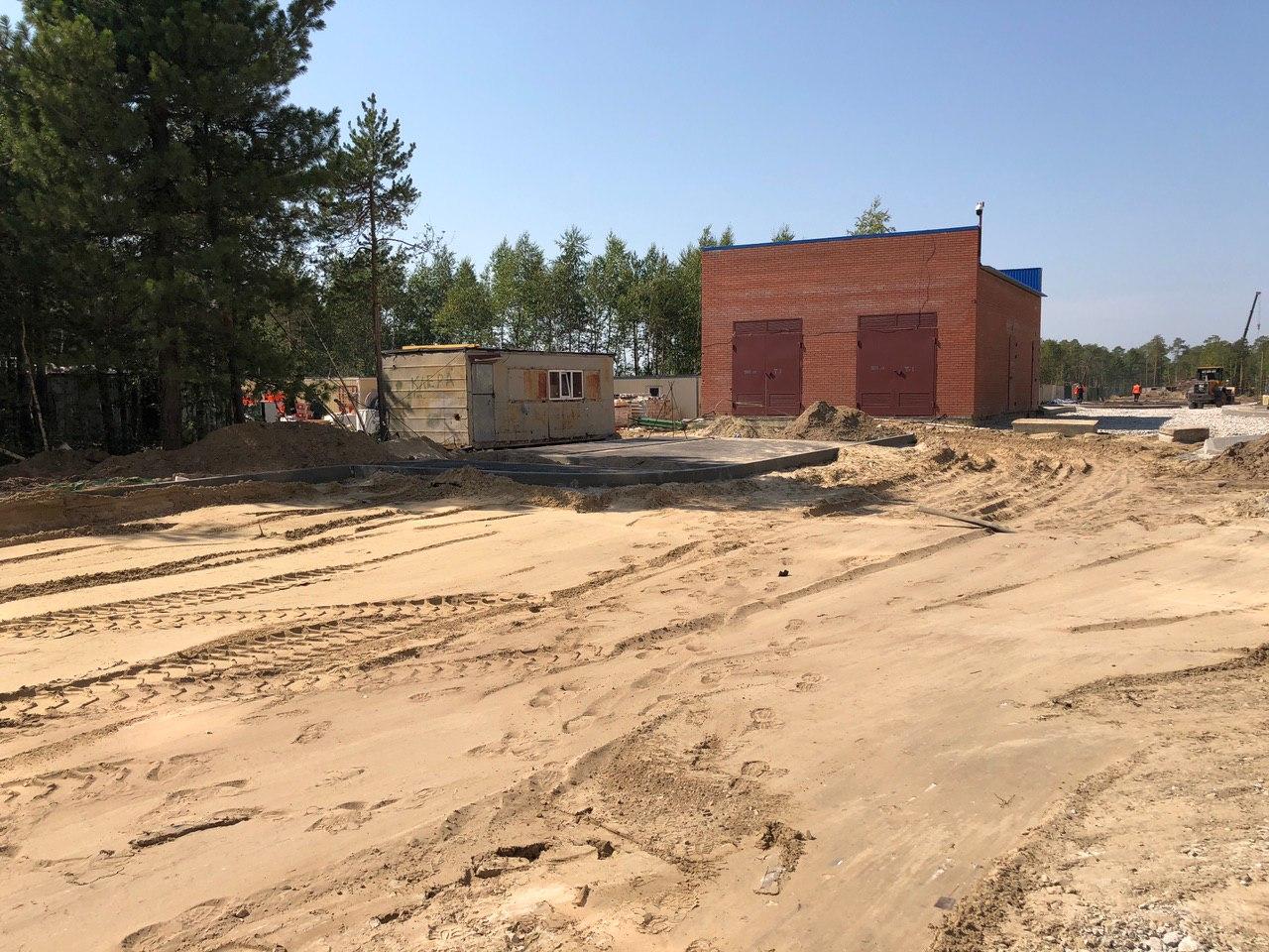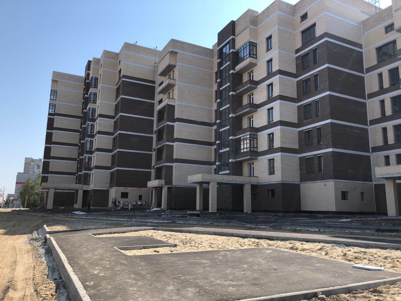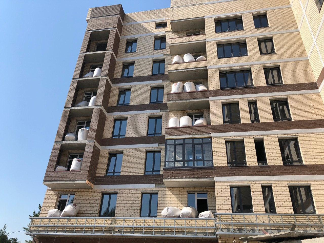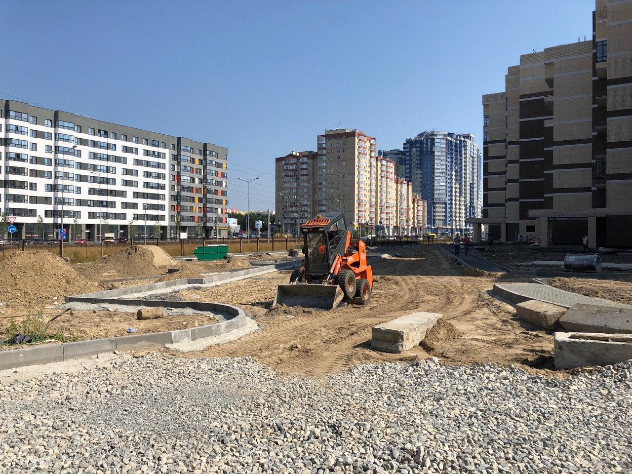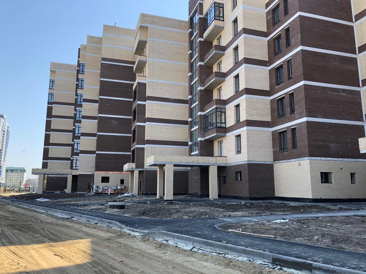 Производятся работы по работы по монтажу фасада, благоустройству территории.