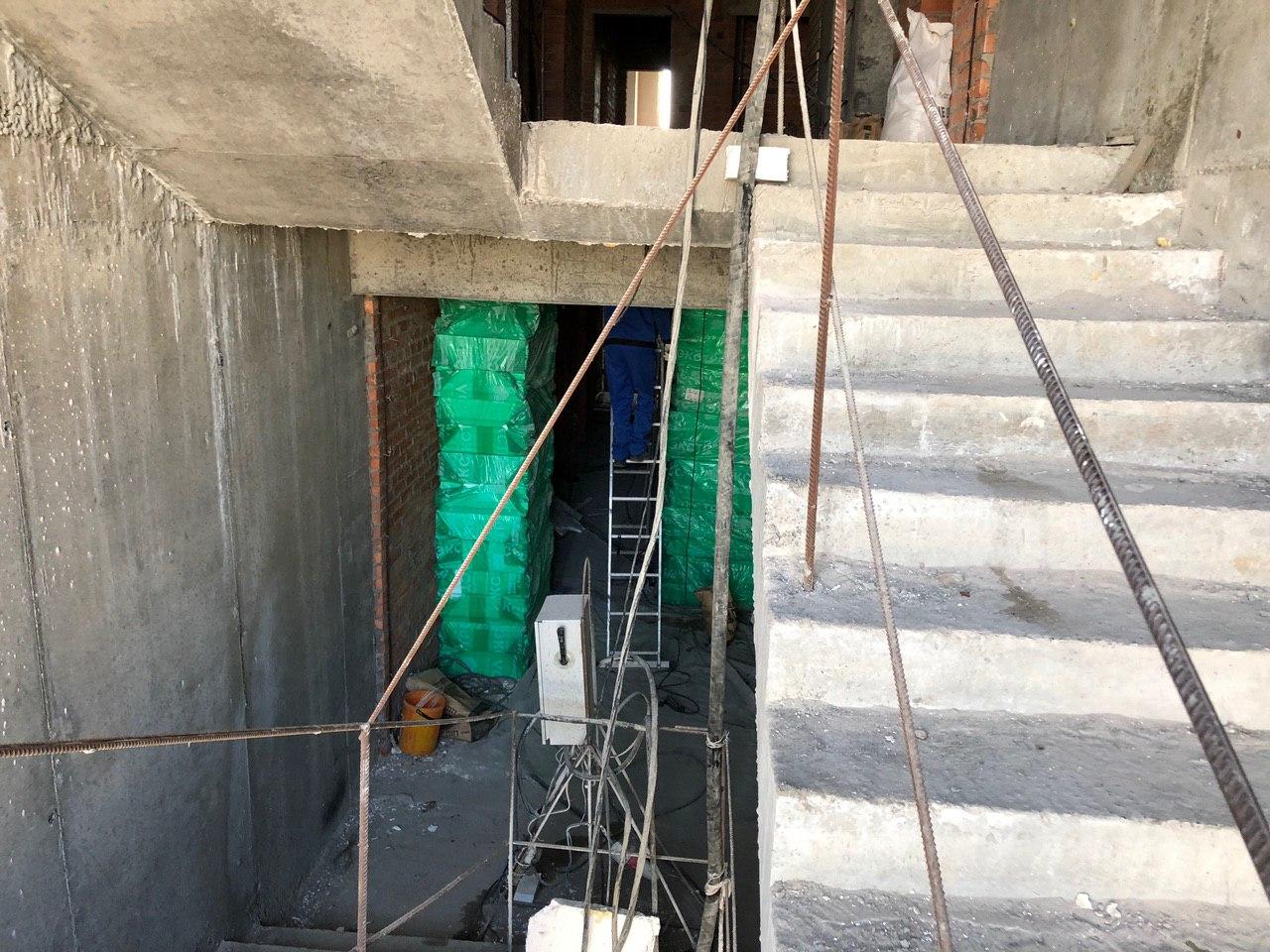 Ведутся работы по устройству электрики в местах общего пользования.