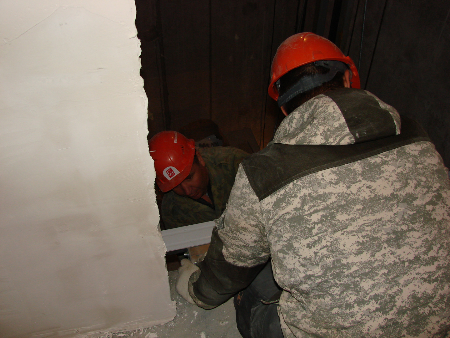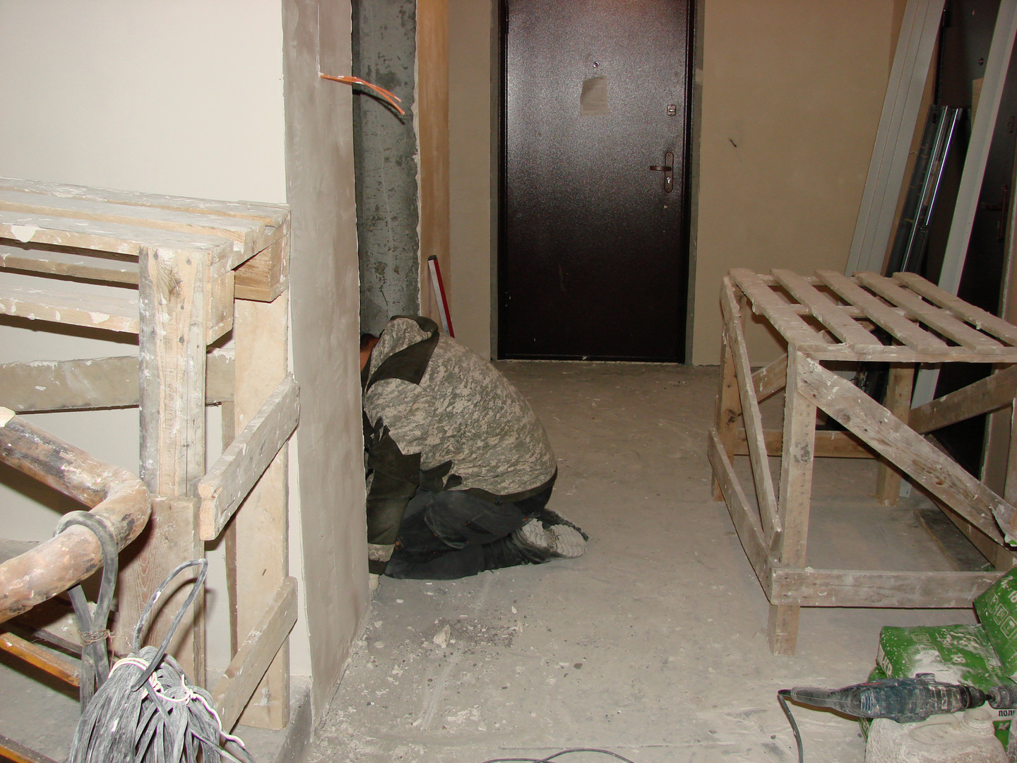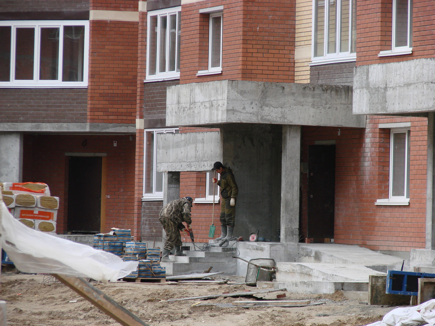 На строительной площадке находится порядка 8-10 человек, отделочники.