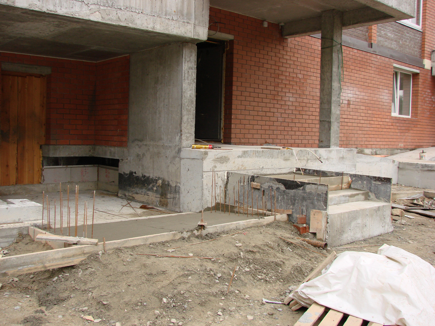 В 1-3 секциях работы не ведутся. Идет работа по устройству крылец 2-3 секции.