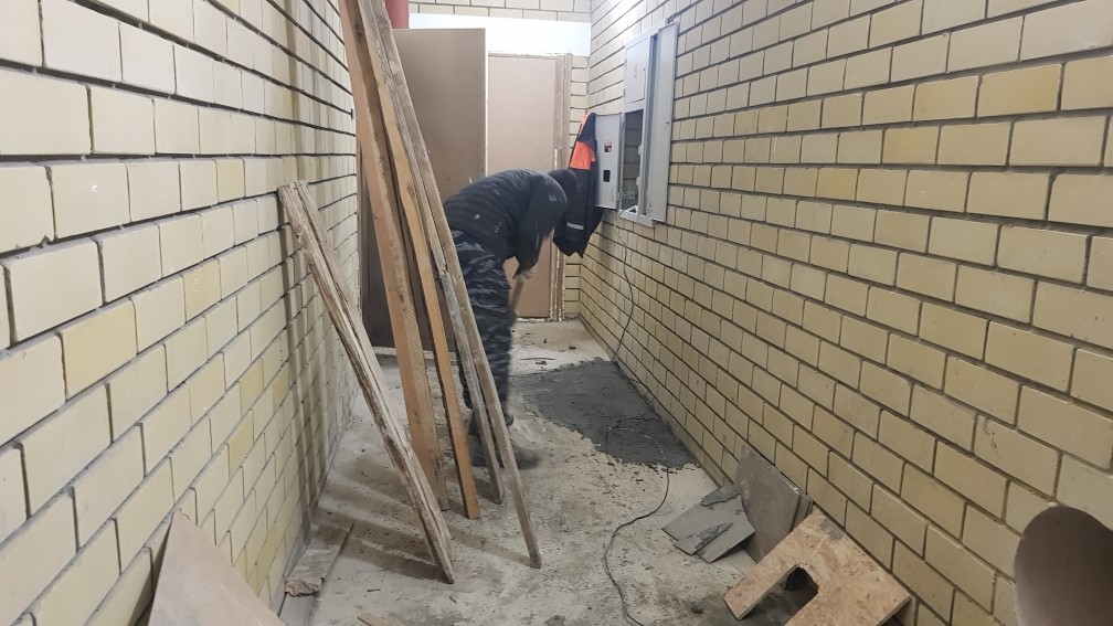 в 7-8 подъездах проводятся работы по заливке сантехнических отверстий, проводятся работы по стяжке полов и укладке напольной плитки, монтаж лифта в 7 подъезде, иные общестроительные работы.