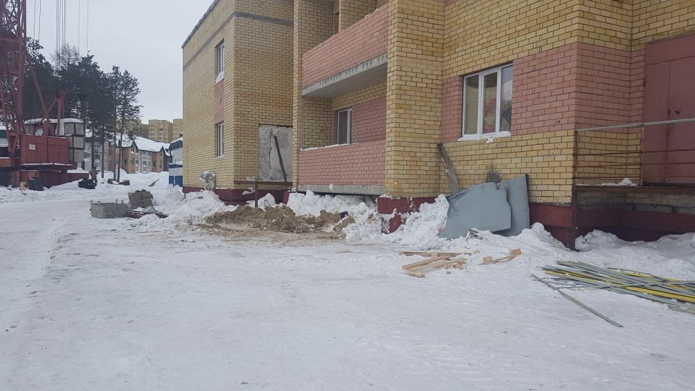 В 8 подъезде проводятся работы по заливке отверстий, сборке лифтов, запущено отопление.