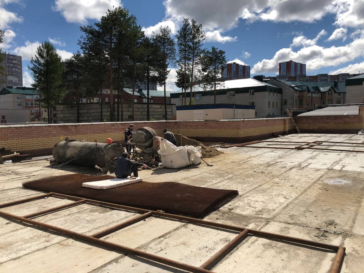 На строительной площадке находятся ориентировочно 15-20 рабочих.
