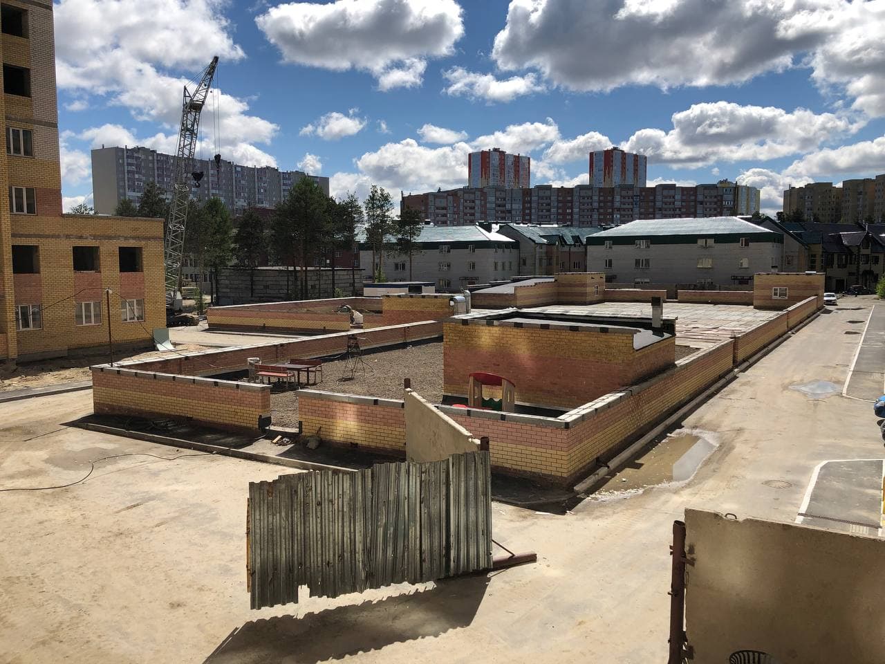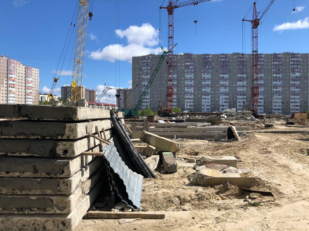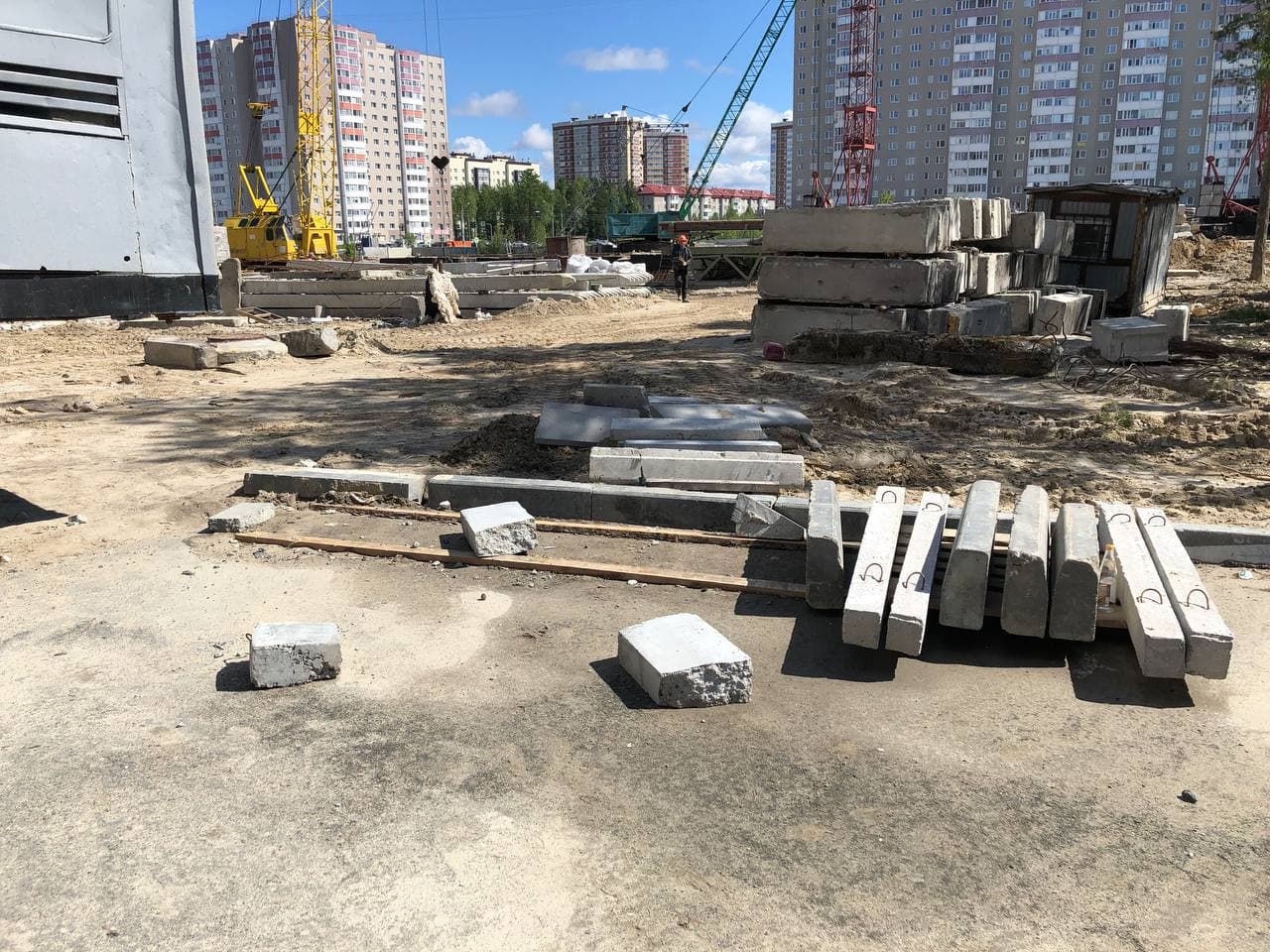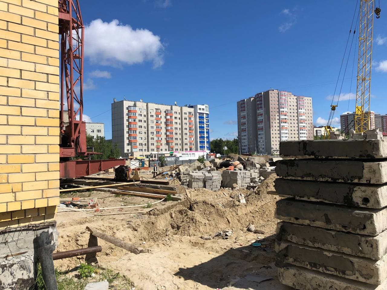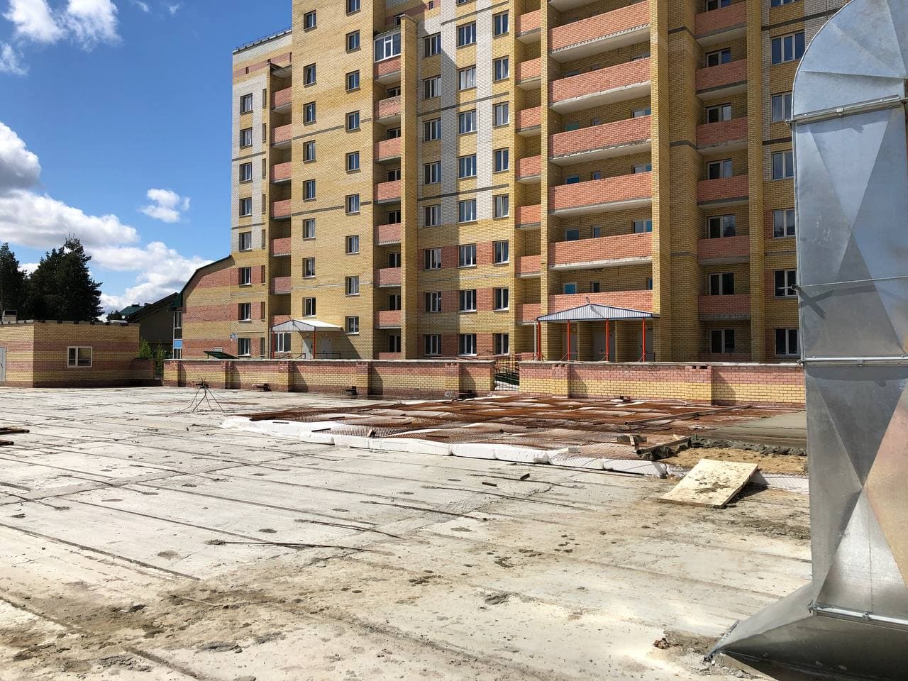 Ведутся работы в 5, 6 подъездах, монтаж лифтов, общестроительные работы. 7-8 подъезды закрыты.