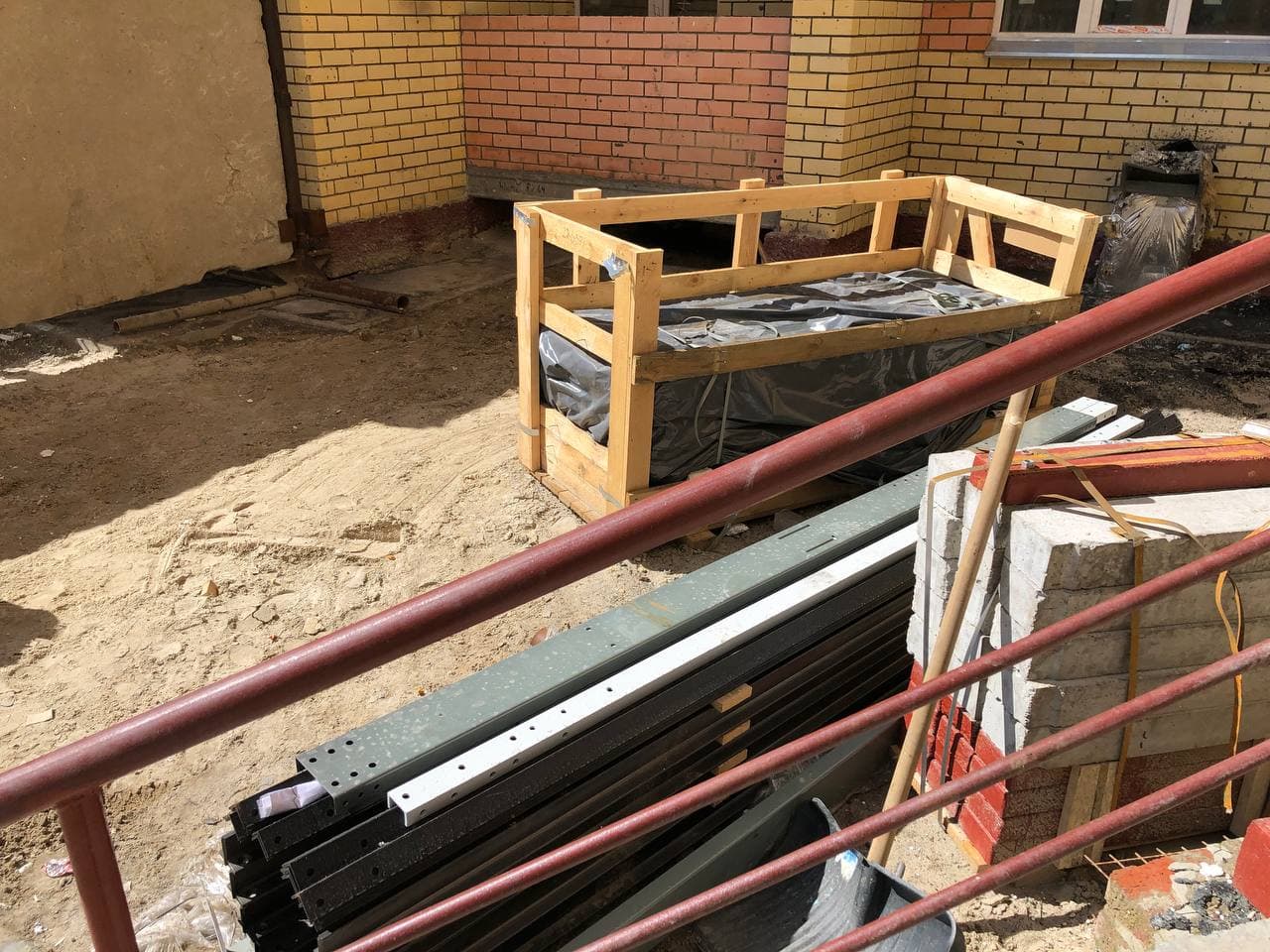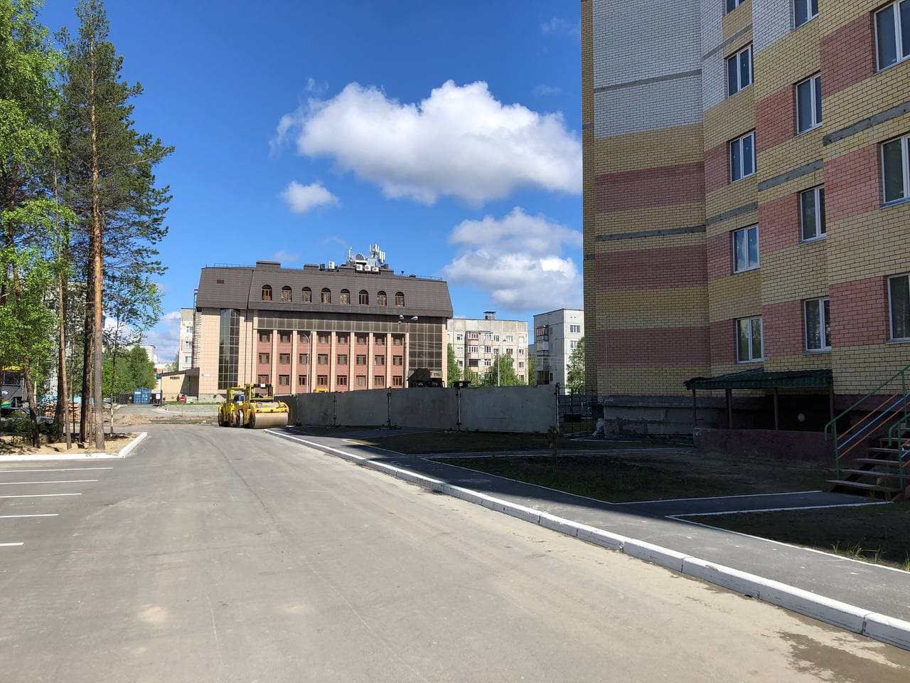 На придомовой территории идет установка МАФ, благоустройство территории на крыше паркинга.