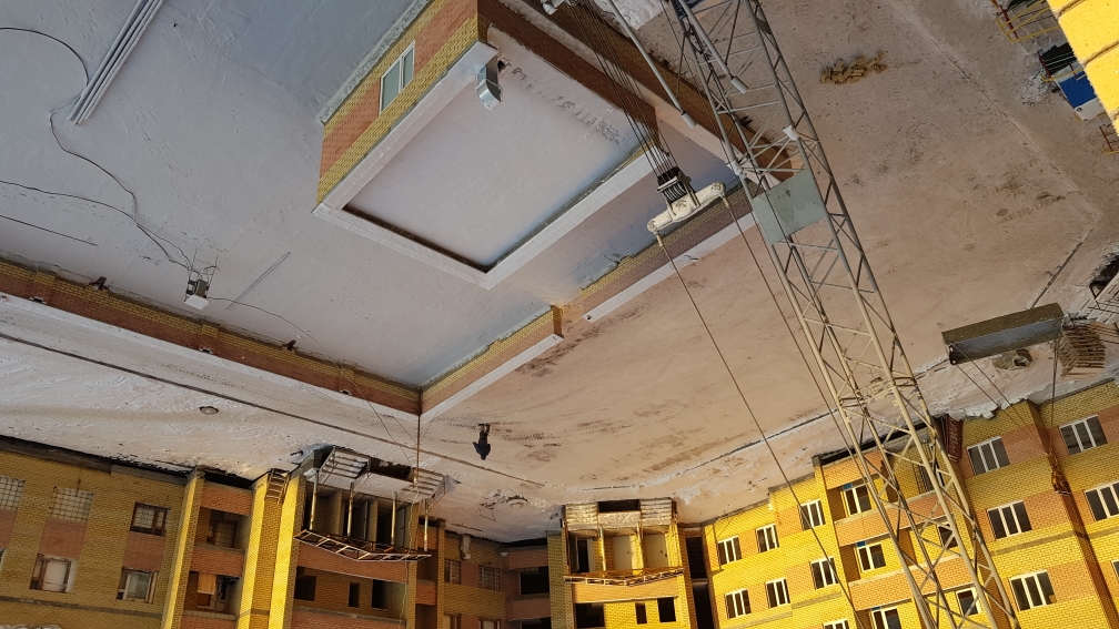 На строительной площадке первых четырех подъездов находятся ориентировочно 20-25 рабочих.