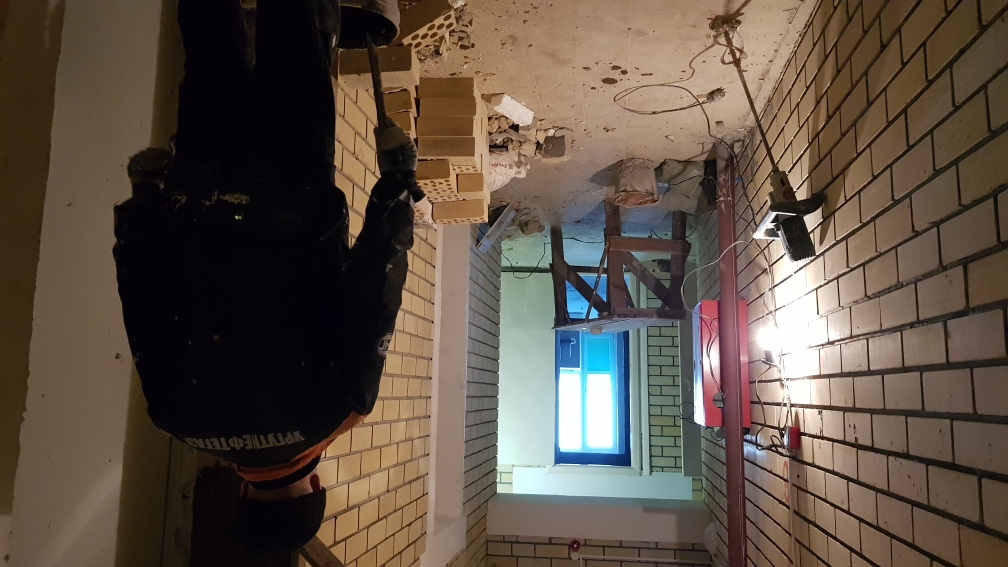 В третьем подъезде в местах общего пользования ведутся работы по отделке. Устанавливаются осветительные приборы на входной группе к подъезду. Устанавливаются доводчики на двери в помещении мусорокамеры.