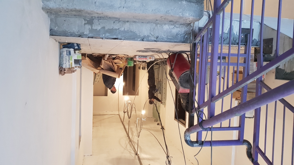 Ведутся работы по отделке мест общего пользования, установка металлических перил на лестничных маршах, монтаж лифтового оборудования. Проводится установка радиаторов в квартиры. На первых этажах проводятся работы по утеплению гаражей, коридоров. Монтаж поэтажных электрощитов в коридорах.