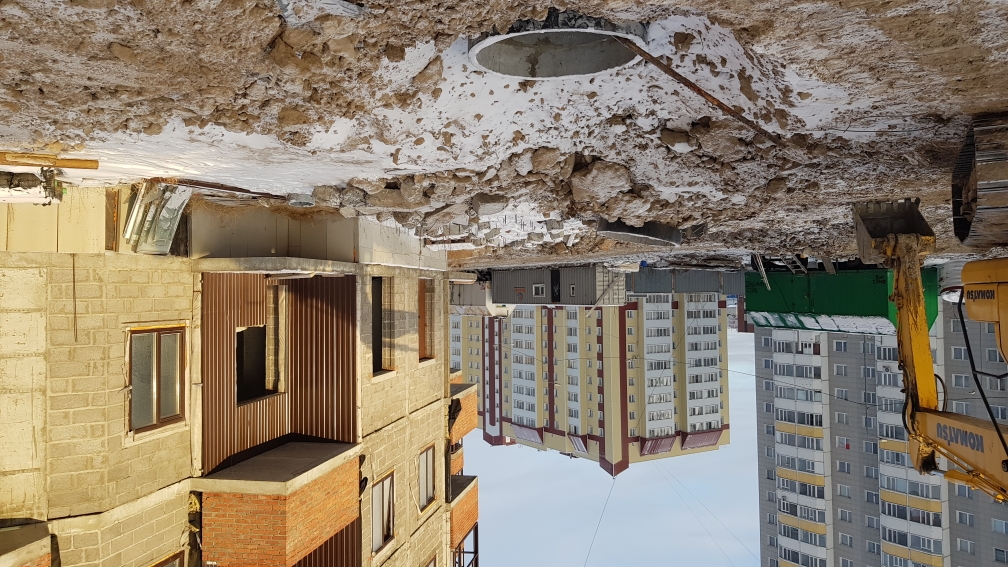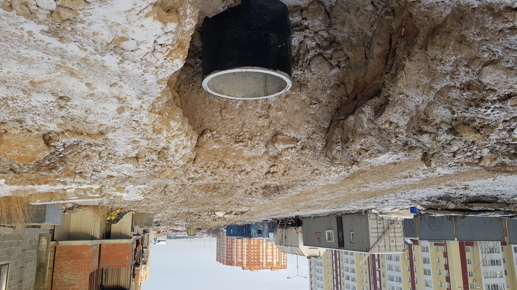 На строительной площадке ведутся работы по устройству наружных сетей канализации.