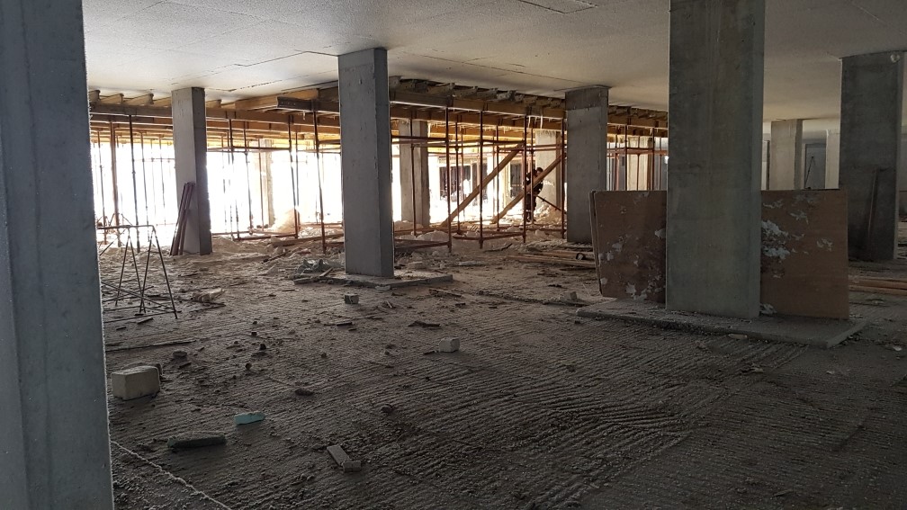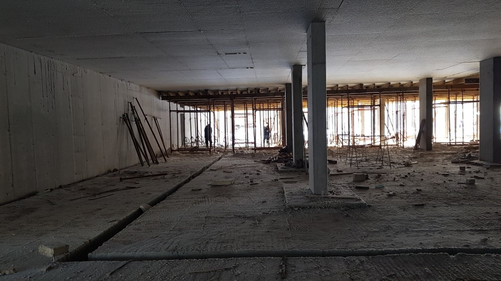 Ведутся работы по устройству монолитной плиты перекрытия паркинга, кладка внутренних стен. Подготовка и монтаж арматурных каркасов и опалубки стен помещений паркинга.