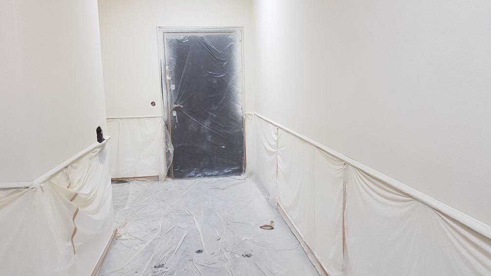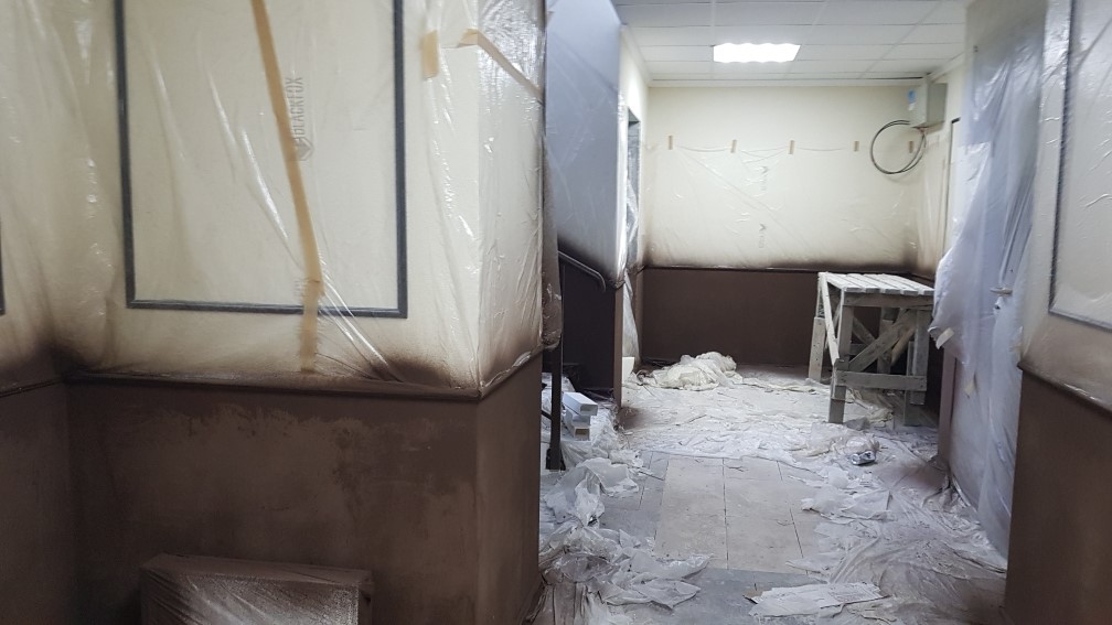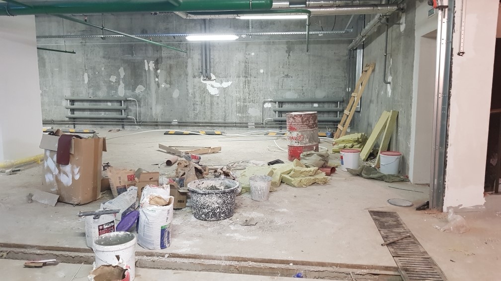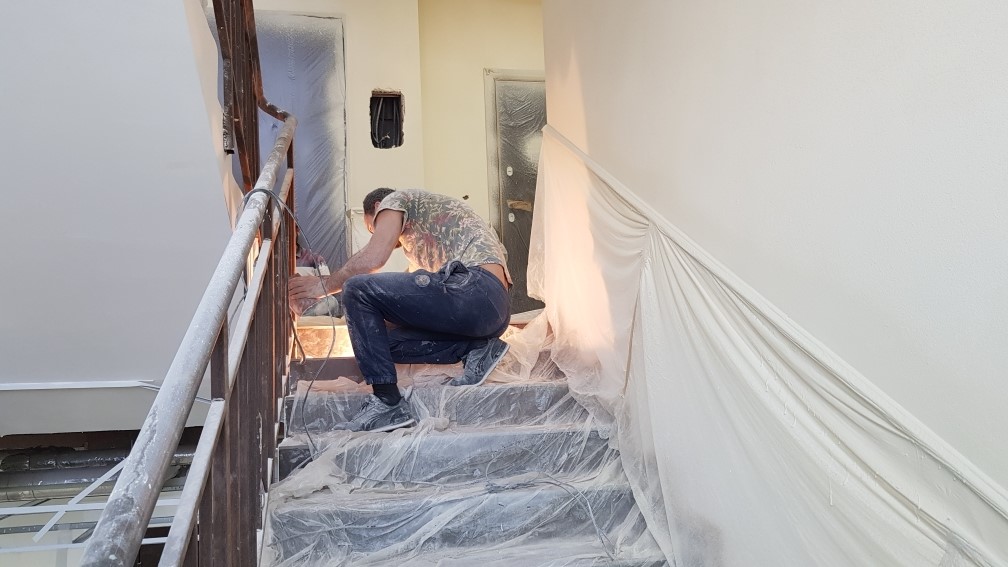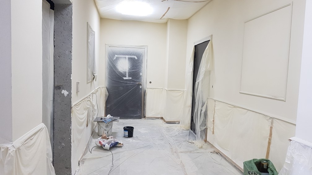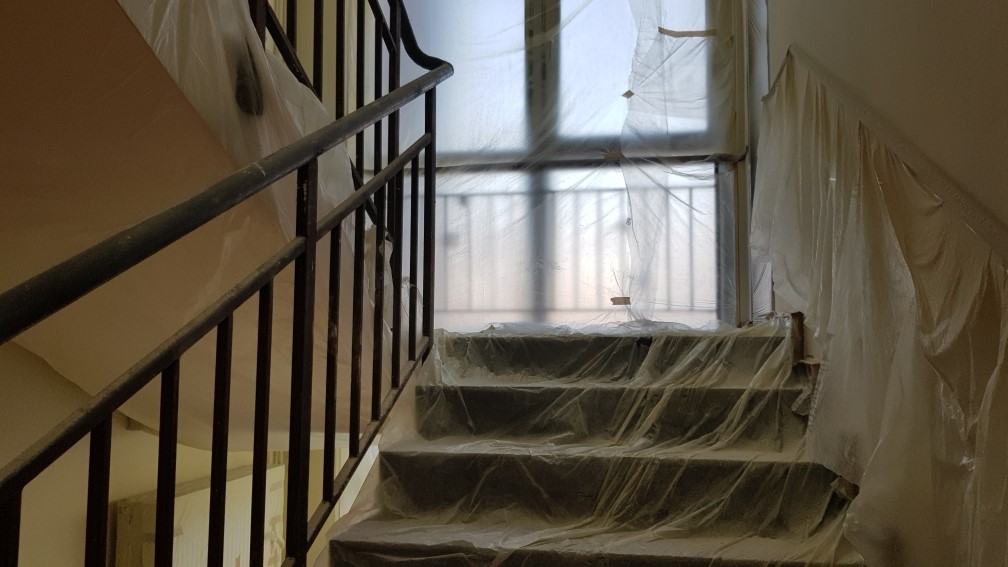 Ведутся отделочные работы в местах общего пользования (декоративная отделка стен, устройство подвесных потолков, укладка плитки).