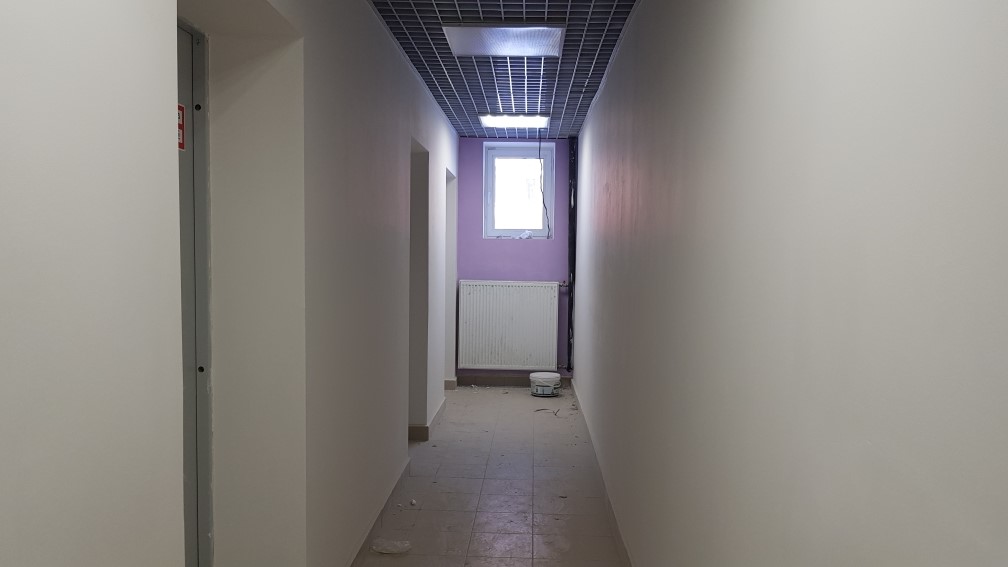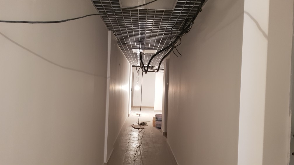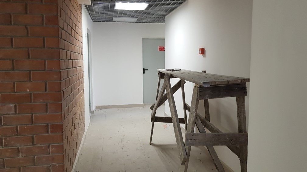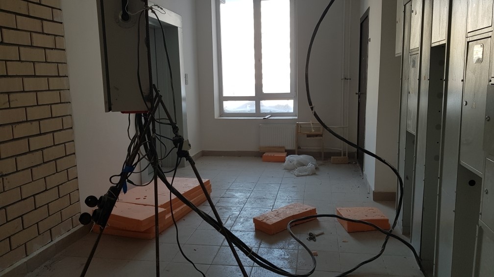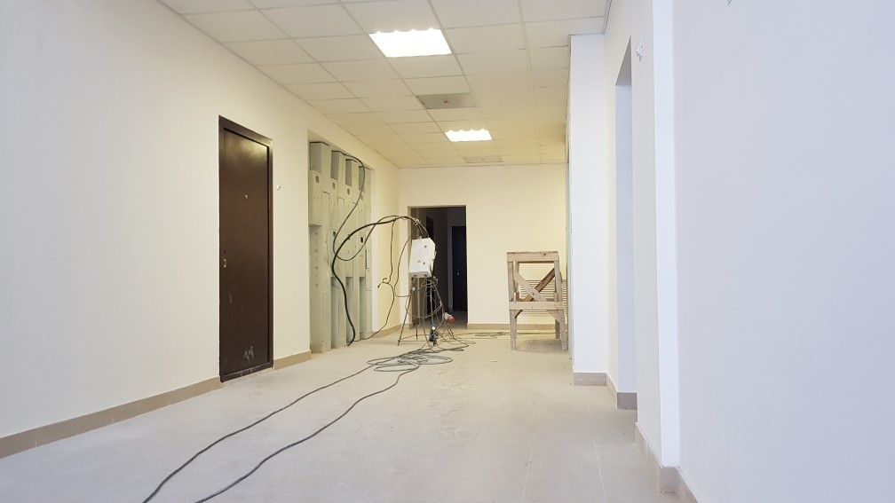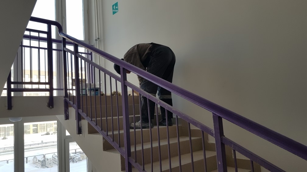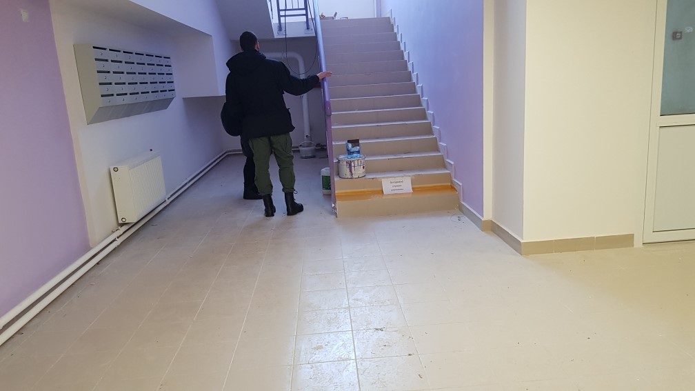 Ведутся работы по отделке мест общего пользования (финишная отделка стен, монтаж потолков). На первых этажах проводятся работы по утеплению гаражей, отделке коридоров.