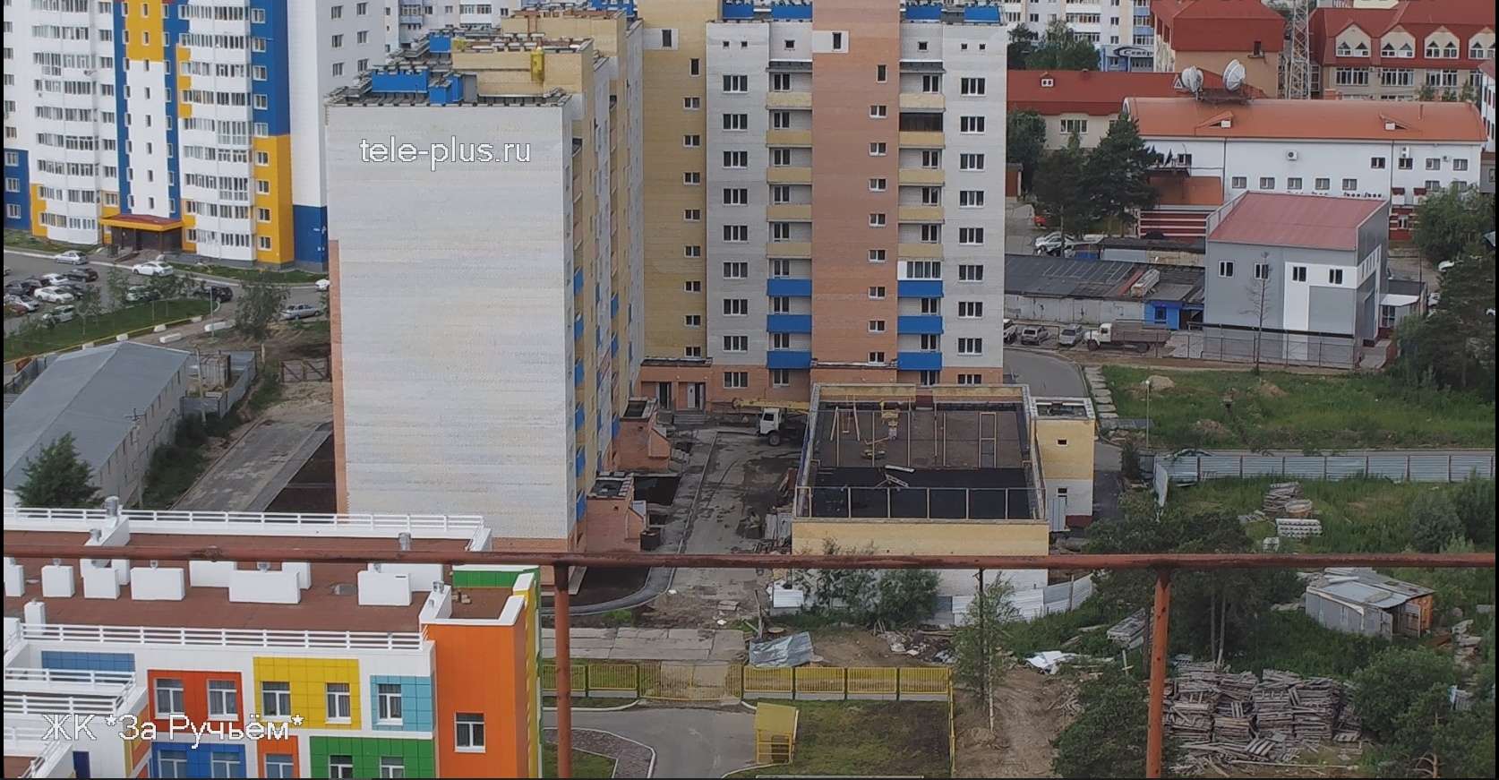 Рабочие в количестве 4-6 человек ведут благоустройство территории. Укладка тротуарных дорожек (благоустройство придомовой территории). Ведется монтаж детской площадки на крыши здания паркинга. Ведутся внутренние работы в подвальном помещении и на чердаке.