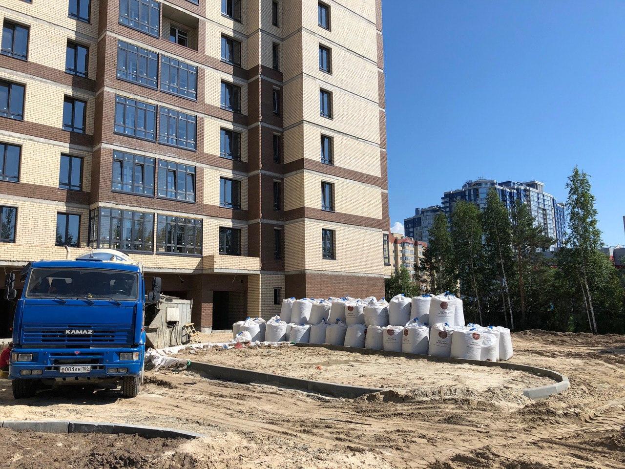 Ведутся работы по благоустройству территории, асфальтирование тротуаров.