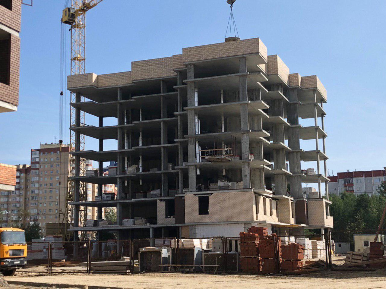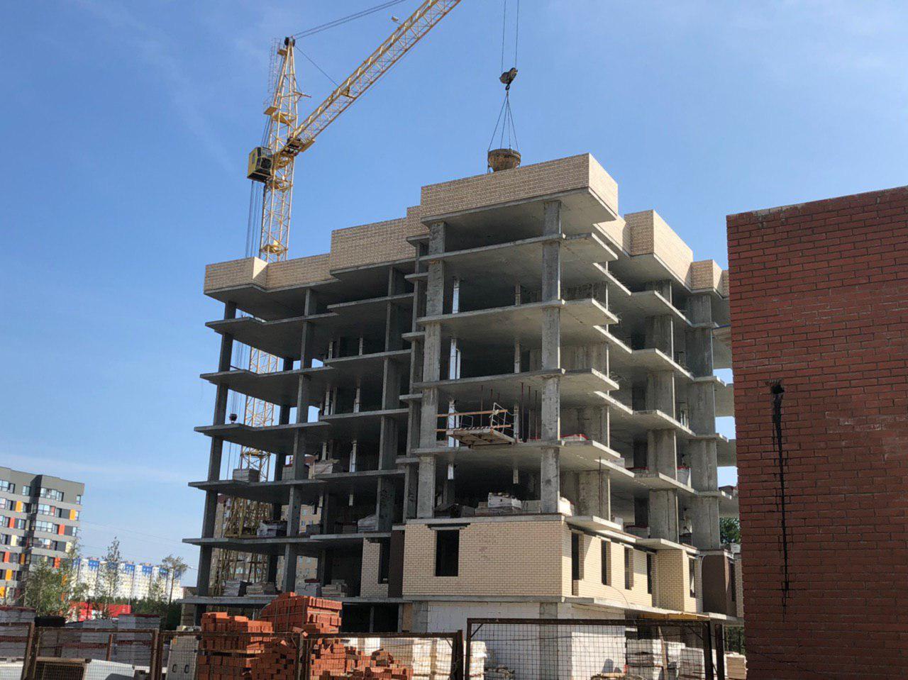 Начата кладка ограждающих конструкций 2 этажа. В количестве 4 человек продолжается кладка ограждающих конструкций на 8 этаже укладка кровли.