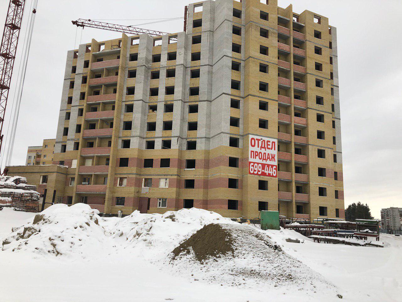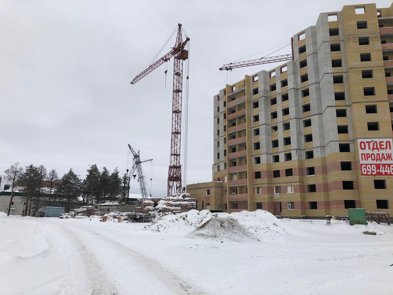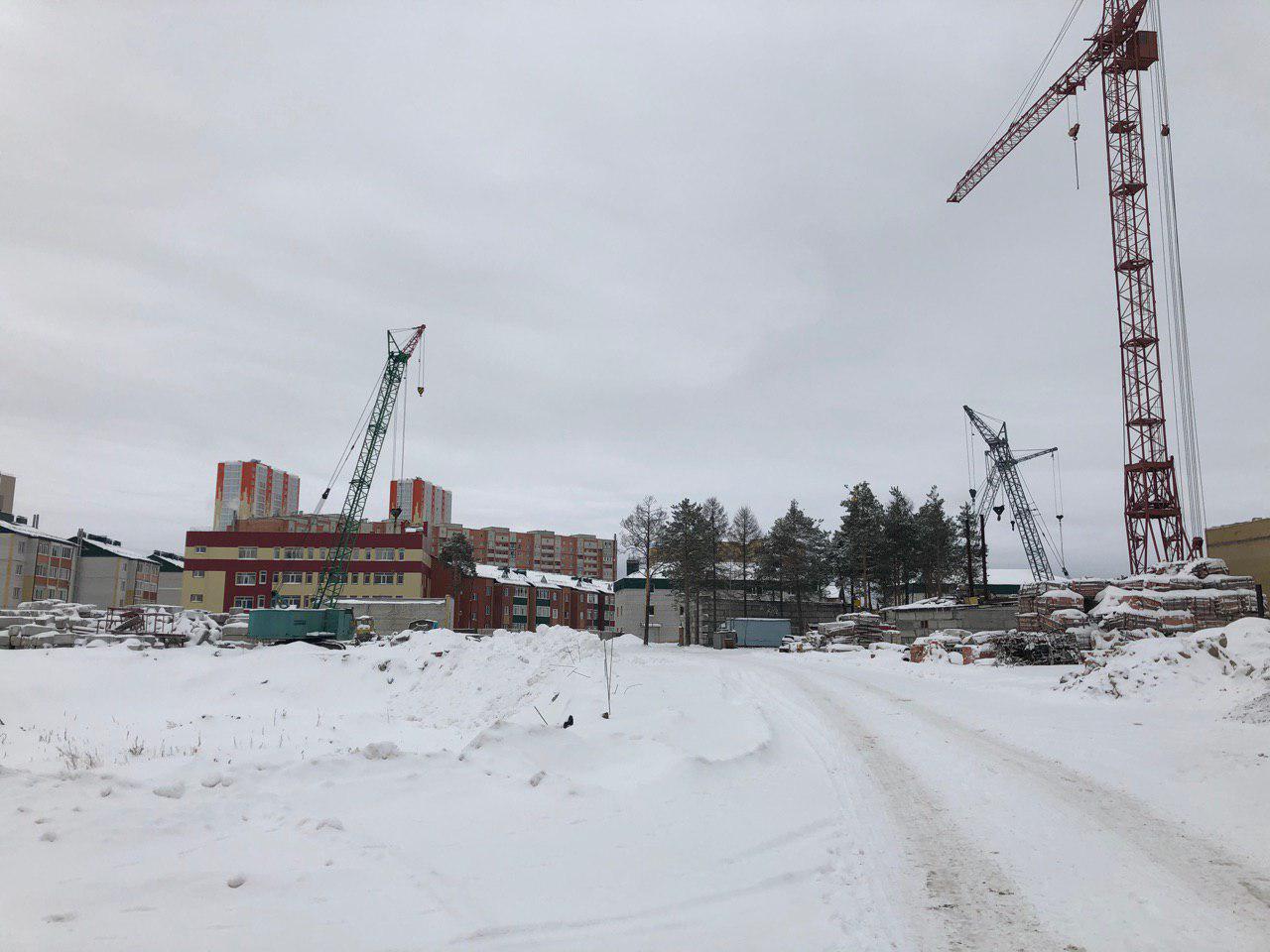 Ведется кладка ограждающих конструкций 10-го этажа 8 секции, а также 12 этажа 7 секции многоквартирного жилого дома и перегородок. Ведутся работы на кровле. Работают краны, автотехника.