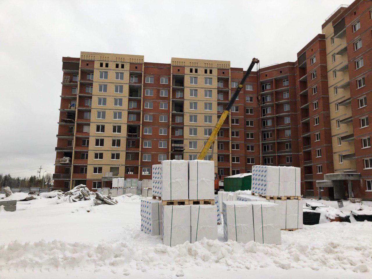 Ведется монтаж перегородок внутри дома, подъем материалов/