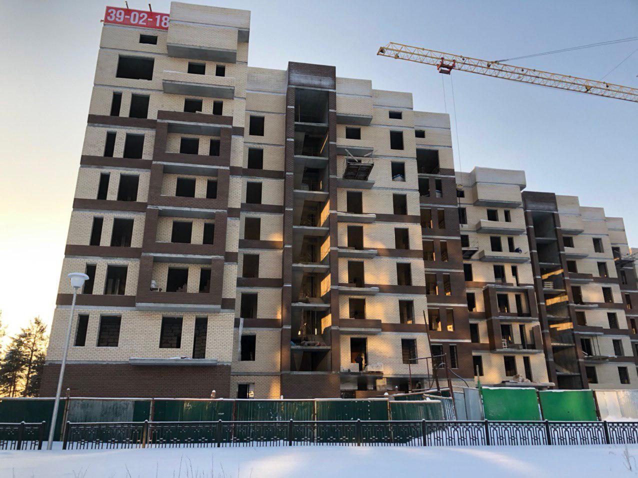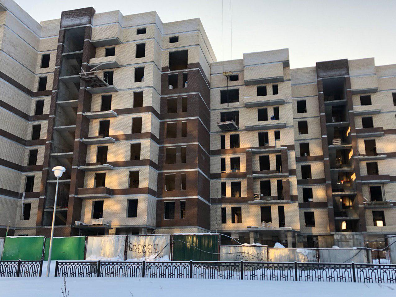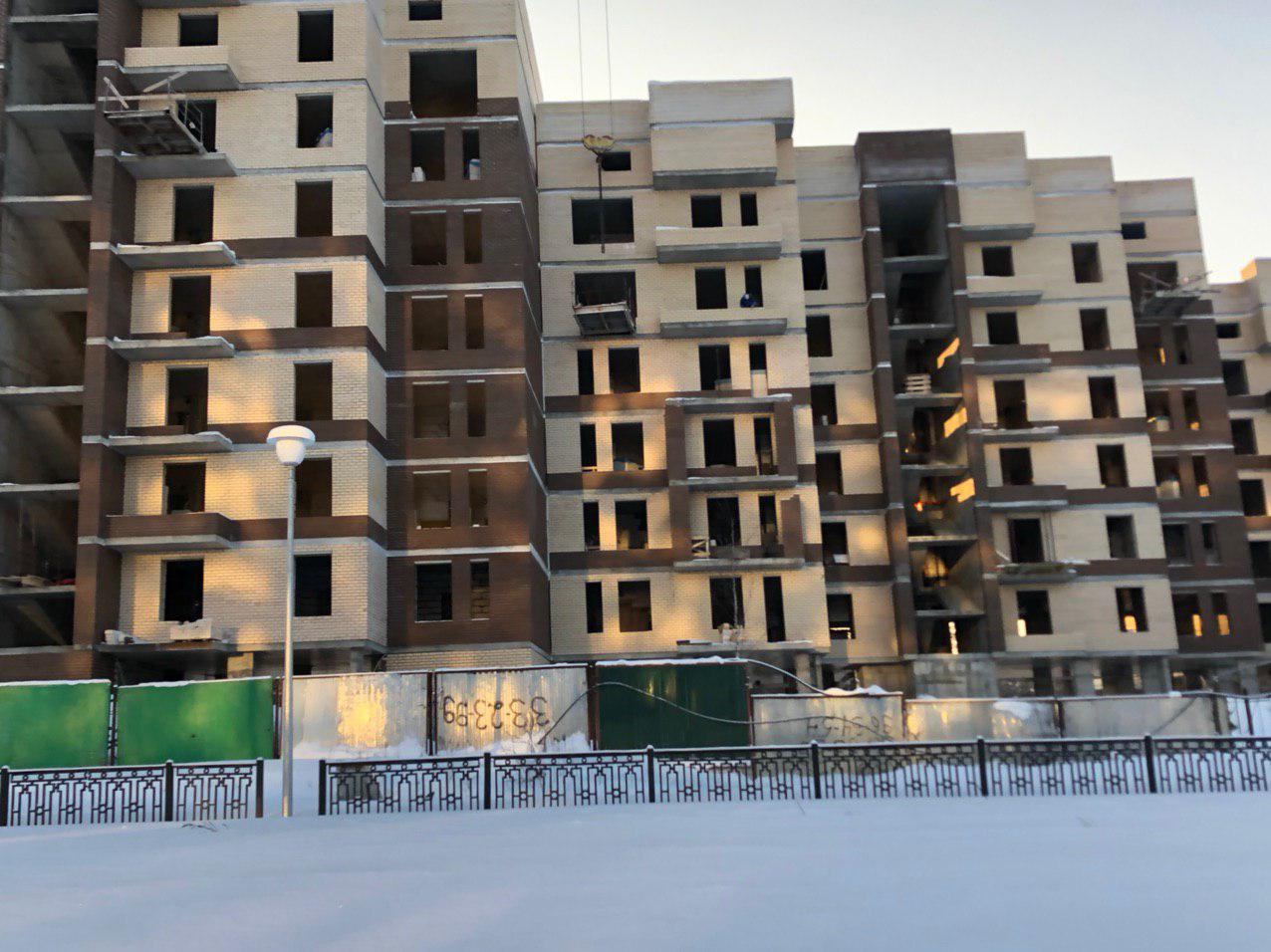 Производятся работы по укладке ограждающих конструкций 8 этажной секции.