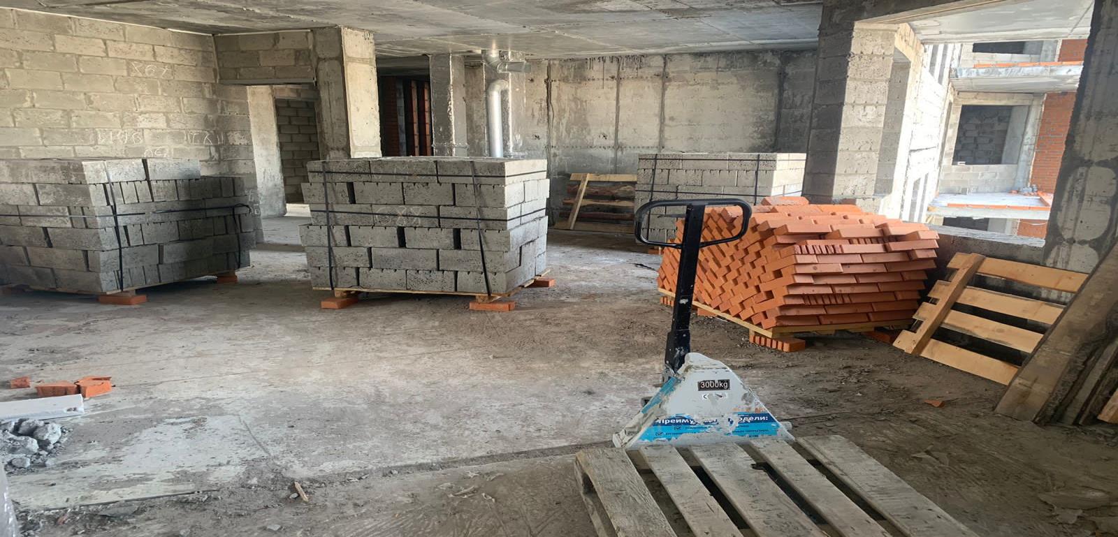 На строительной площадке ведутся строительно-монтажные работы.
