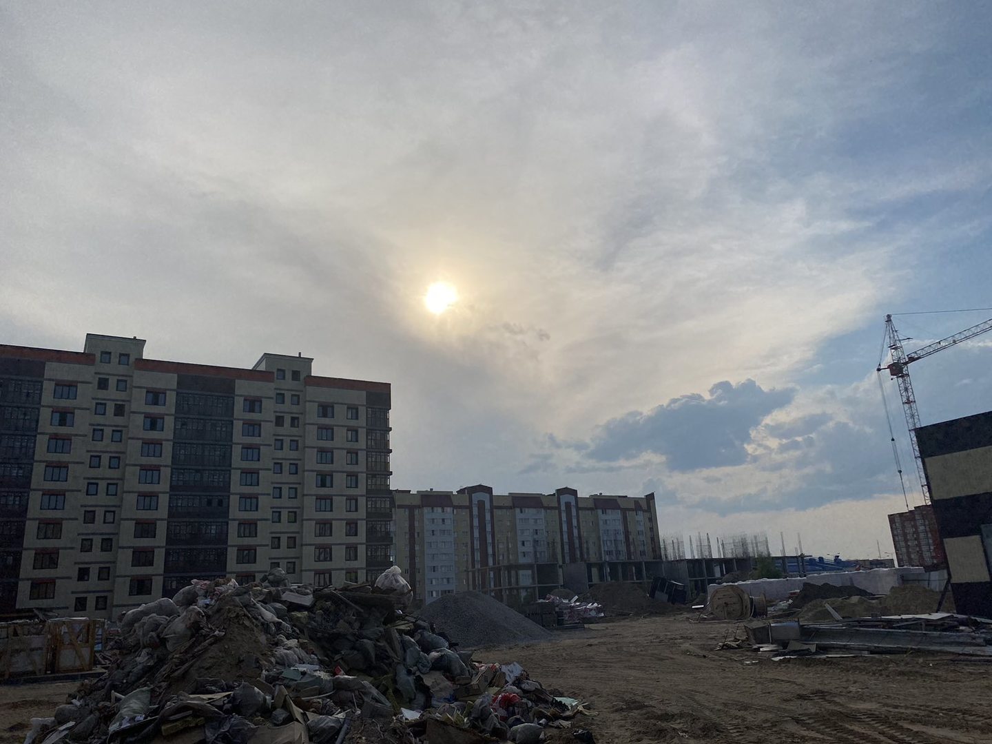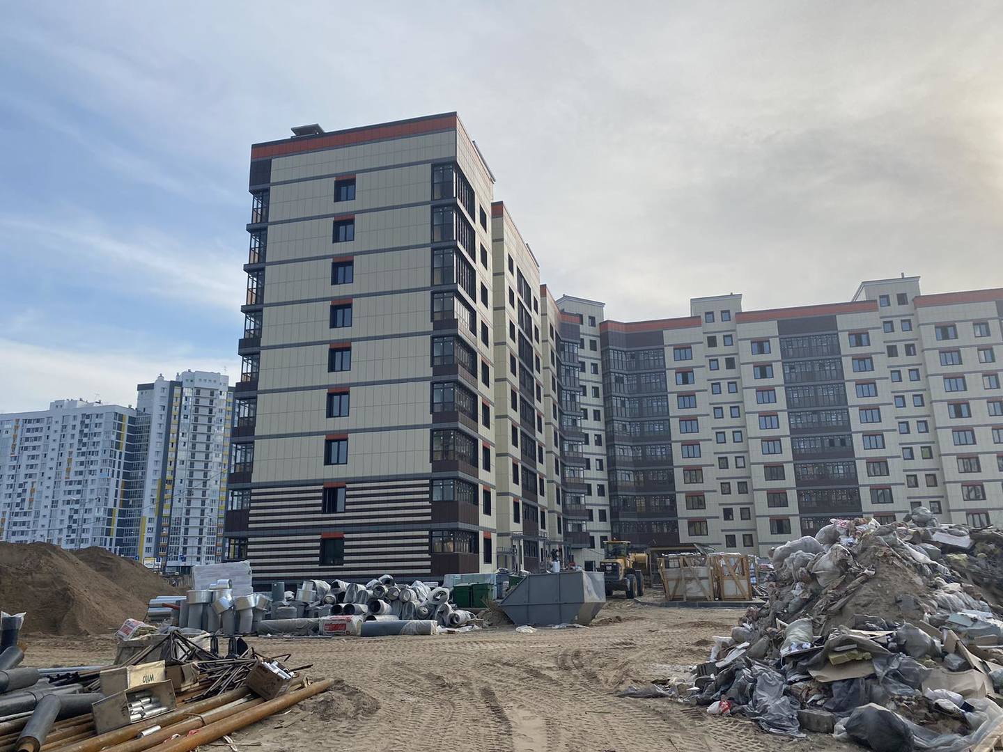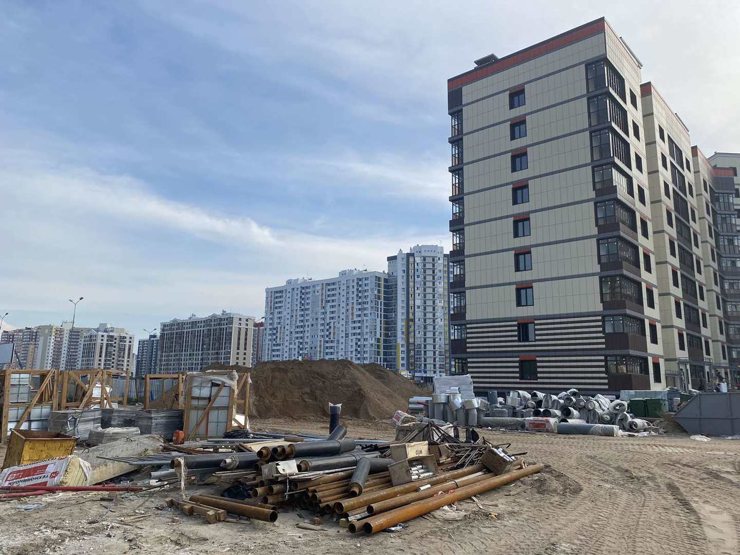 На строительной площадке ведутся строительно-монтажные работы.