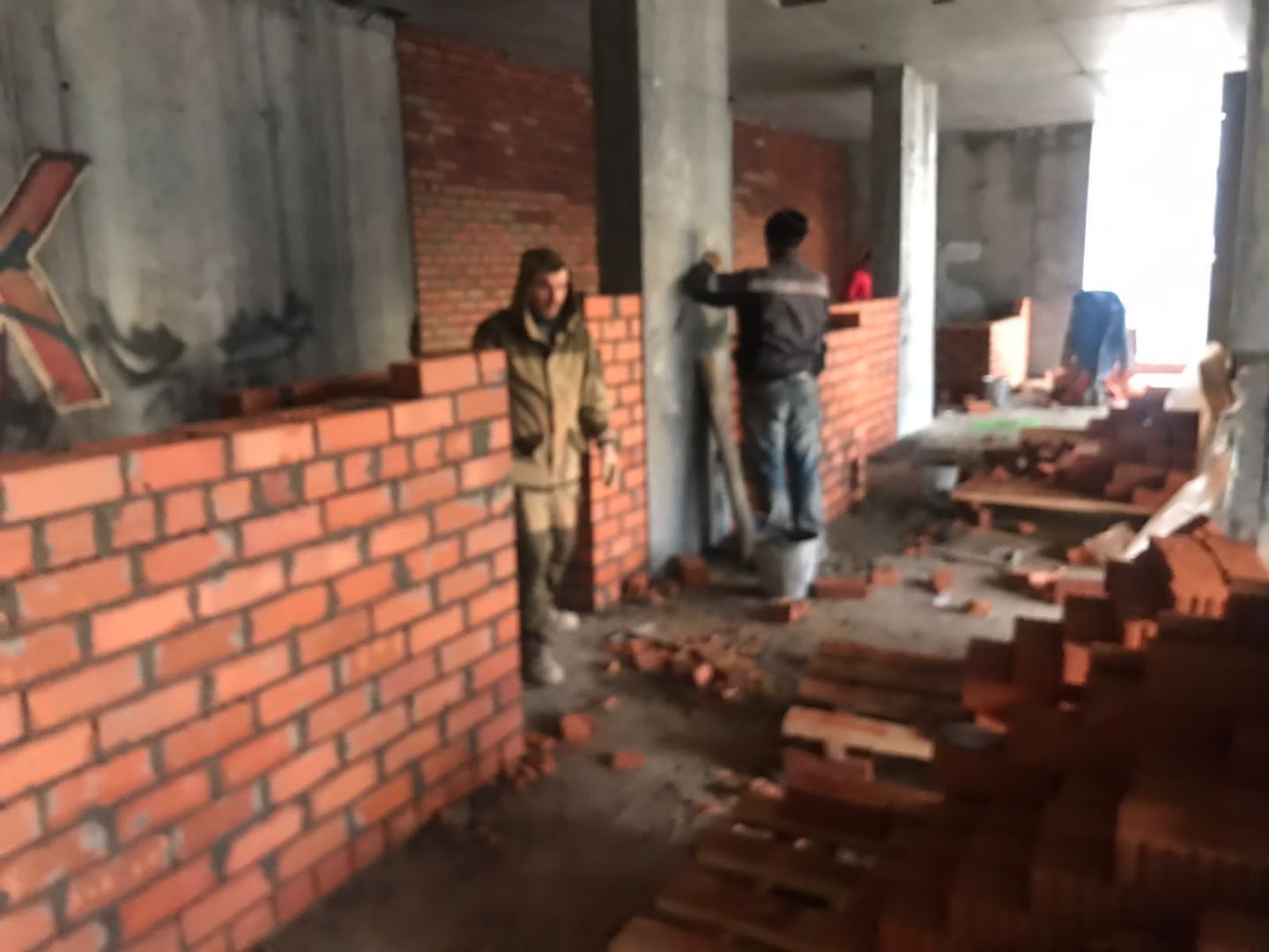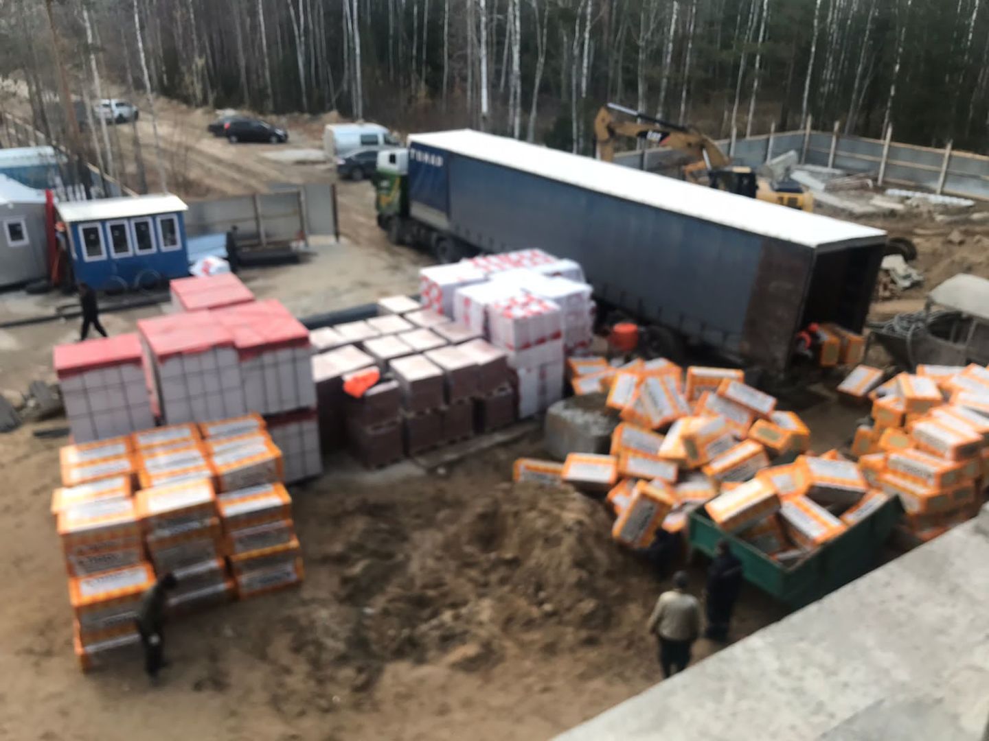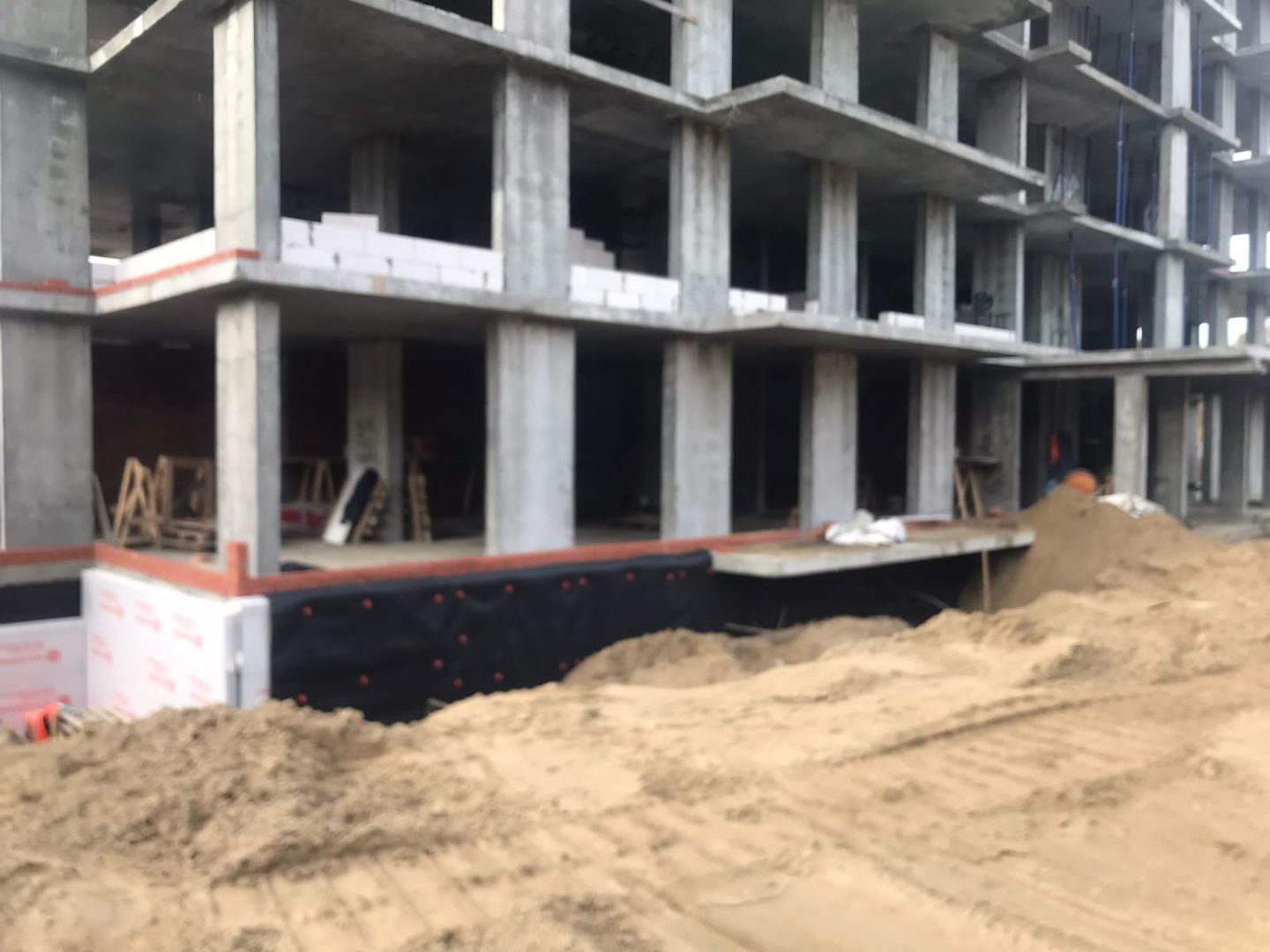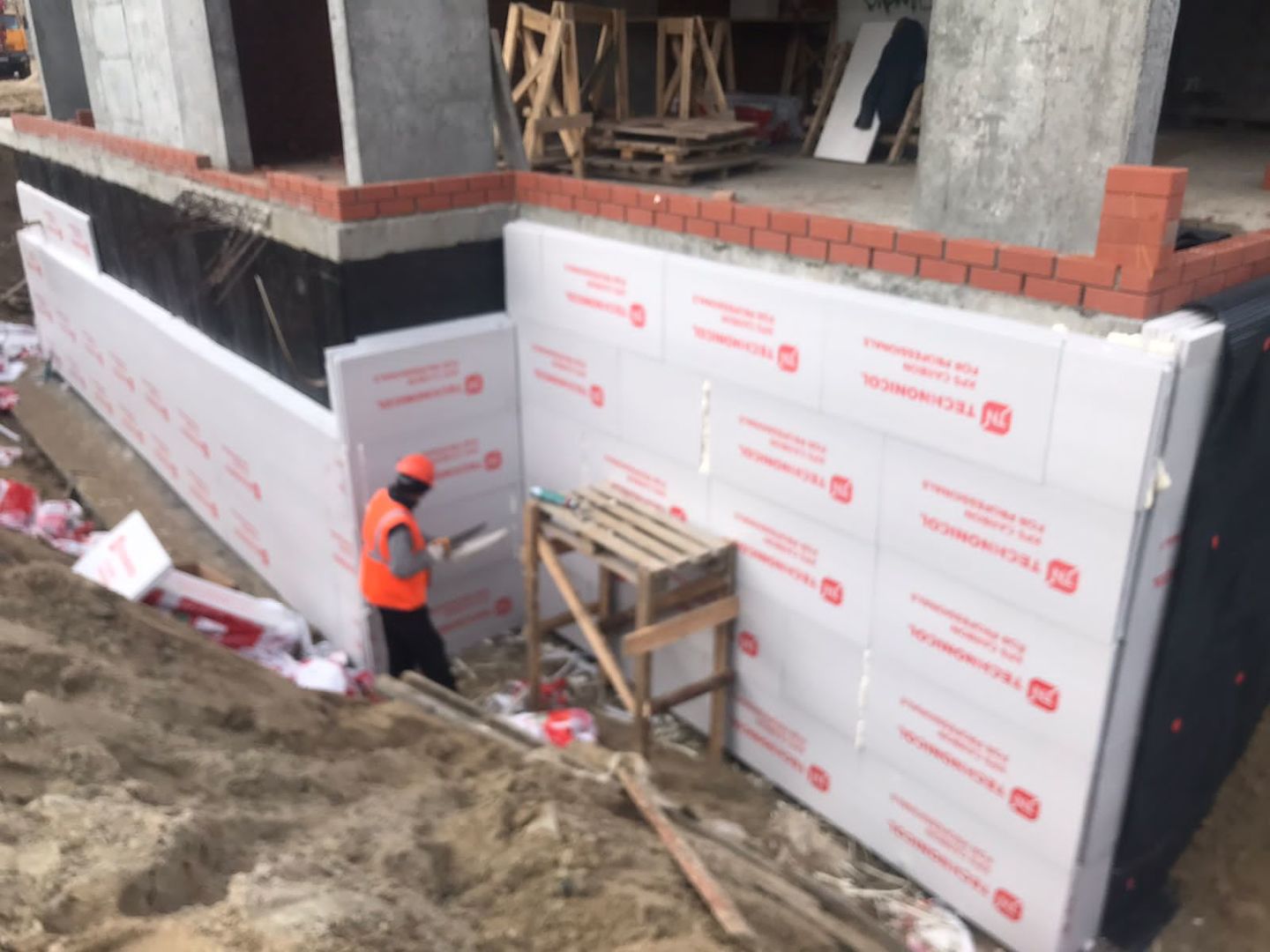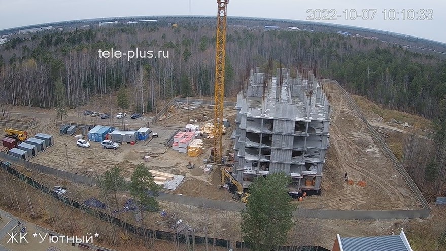 На строительной площадке ведутся строительно-монтажные работы.
