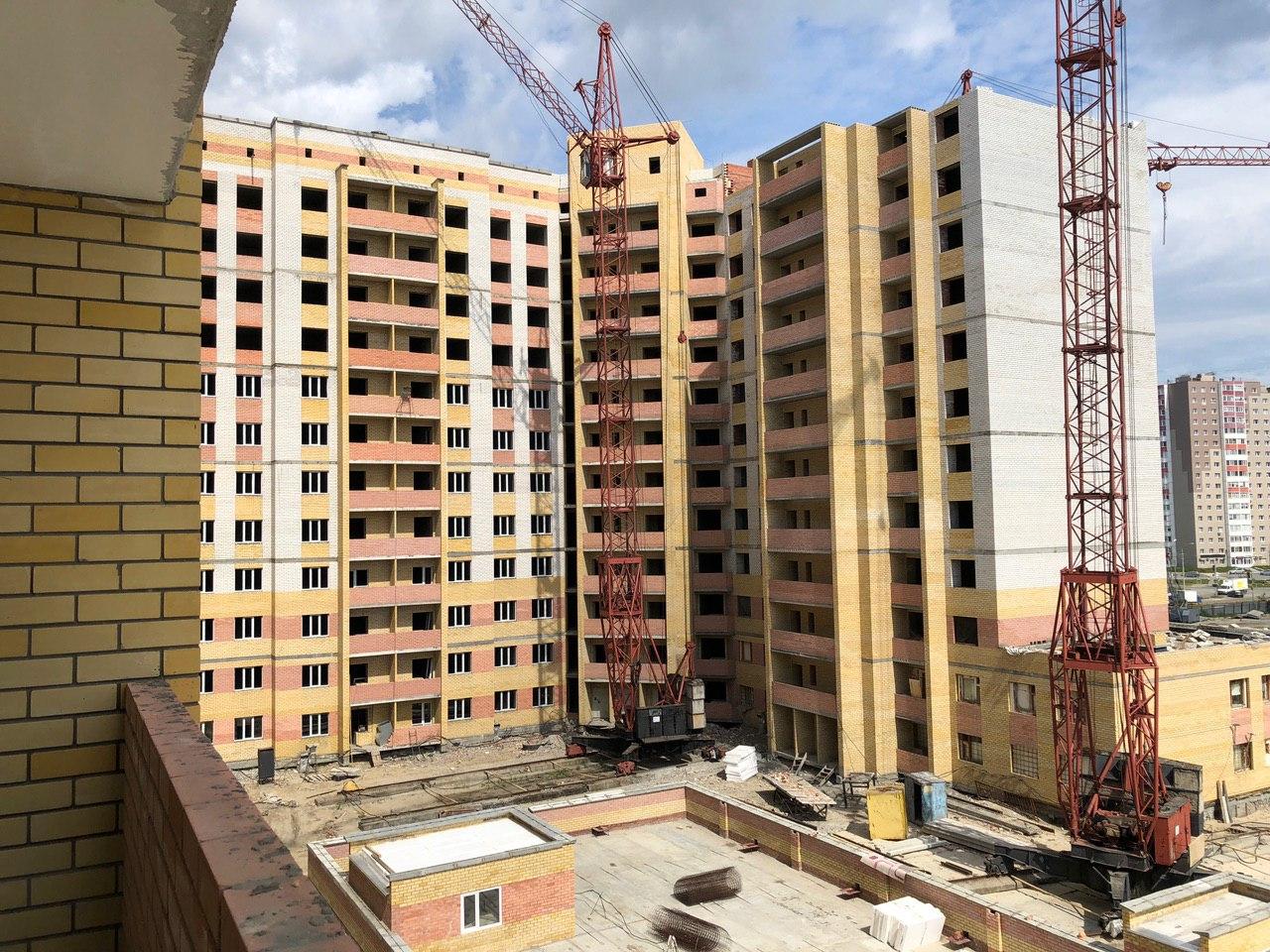 На строительной площадке находятся ориентировочно 10 человек, 4 каменщика ведут кладку 12 этажа 8 секции. Внутри 2 секции 4 электрика ведут работы, устраняют недоделки, монтируют короба. Ведутся работы по остеклению 5 секции.