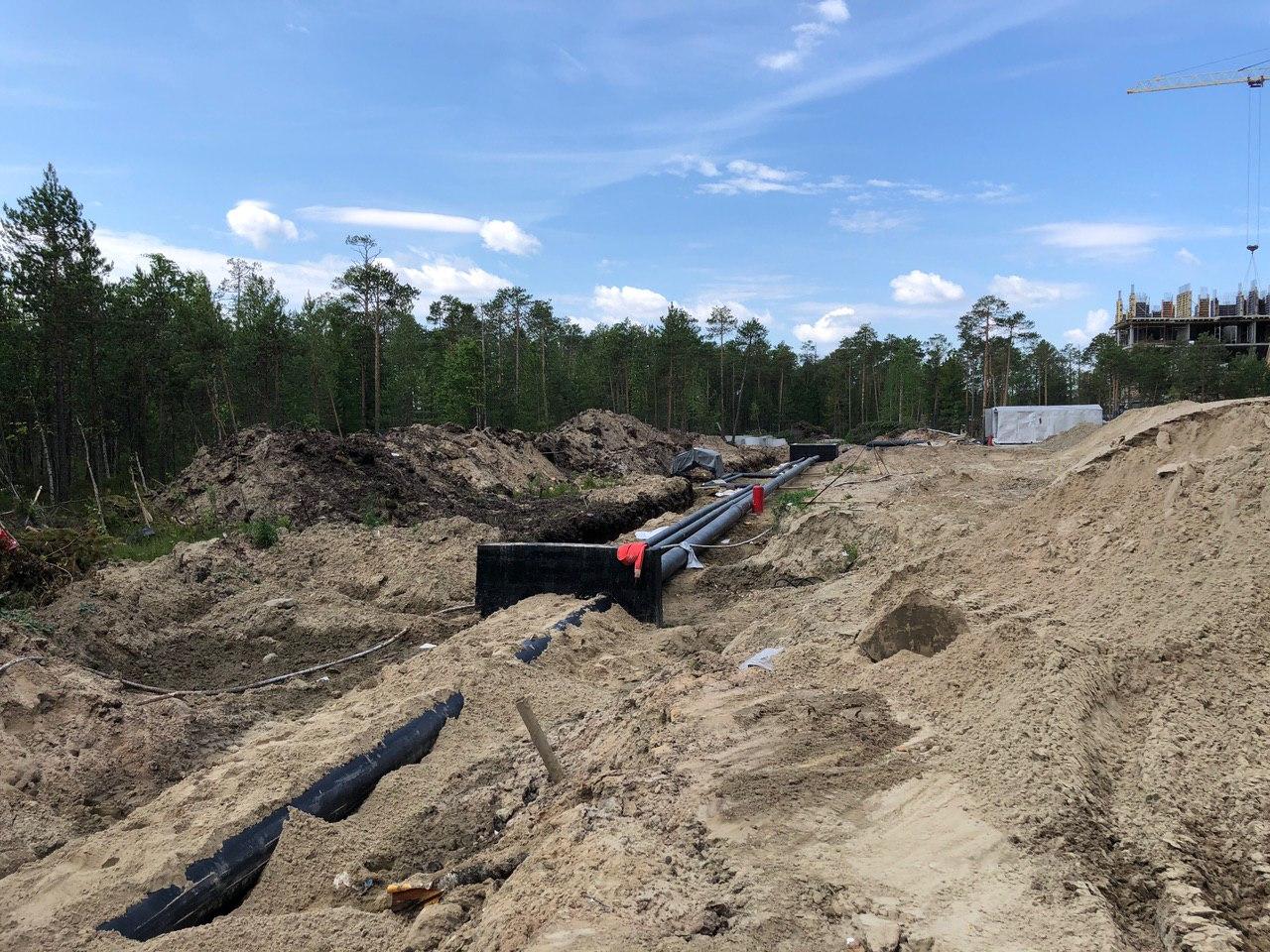 Ведутся работы по прокладке труб тепловодоснабжения. Начаты работы по благоустройству территории.