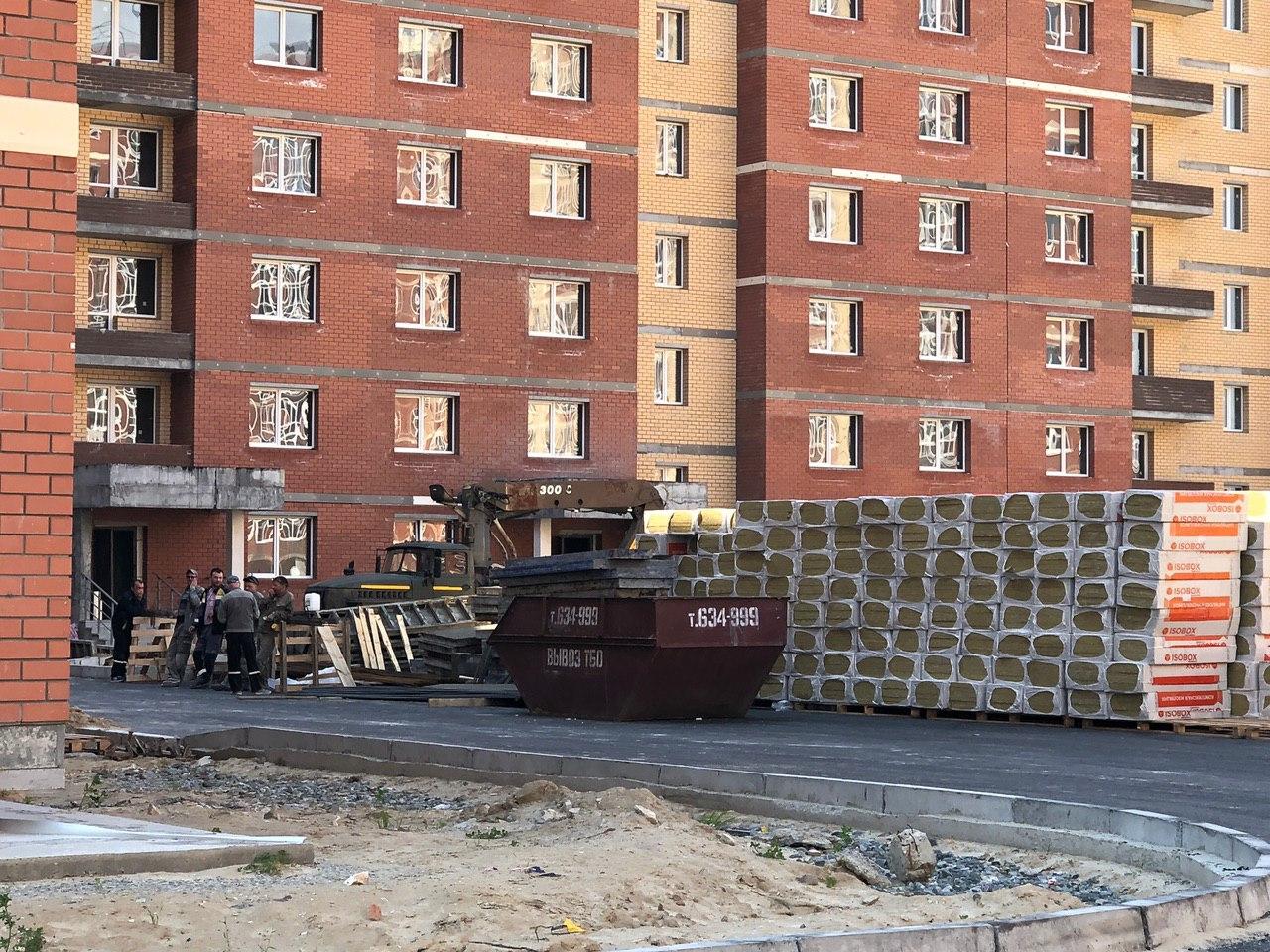 На строительной площадке находятся ориентировочно 20 человек, которые ведут работы по устройству внутренней вентиляции, систем электроснабжения, проводят ревизию электрики, восстановление внутренней ливневой канализации, устройство входных групп, в том числе подбетонку для крылец.