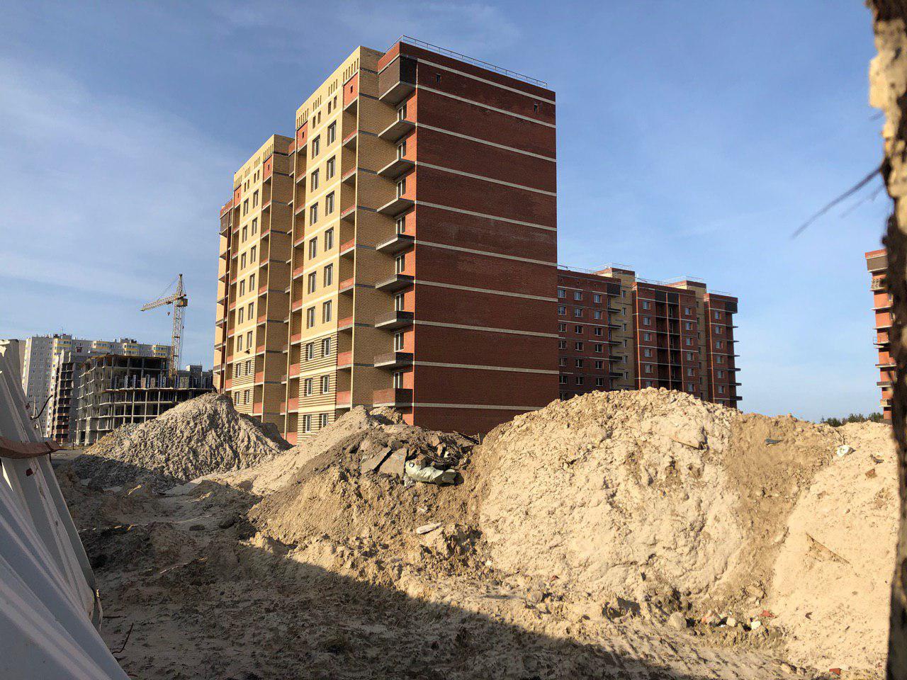 5 человек ведут работы по благоустройству прилегающей территории. Установка бордюров. Ведутся работы по отсыпке гравием тротуарных дорожек. Произведено асфальтирование проезда внутри двора.