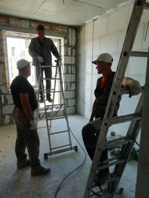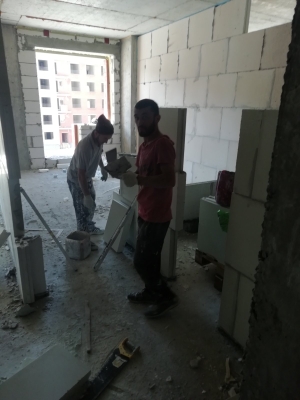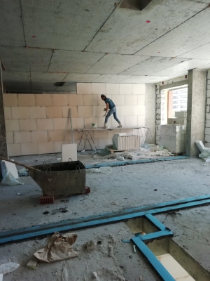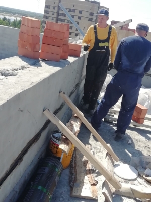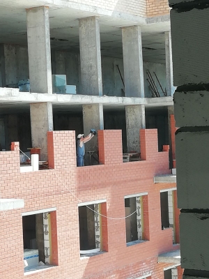 Продолжаются работы по устройству многослойной стены 3 - 5 этажей. Устройство перегородок из пазогребневой плиты. Монтаж внутренней электропроводки. Устройство ограждающей конструкции по контуру паркинга. Монтаж воздуховодов вентиляции. Монтаж оконных конструкций. Монтаж защитных решеток на окна. Монтаж стояков канализации и ХГВС. Проводятся работы по устройству кровельного пирога. Выполнен монтаж всех лифтов - ведутся пусконаладочные работы. Общестроительные работы.